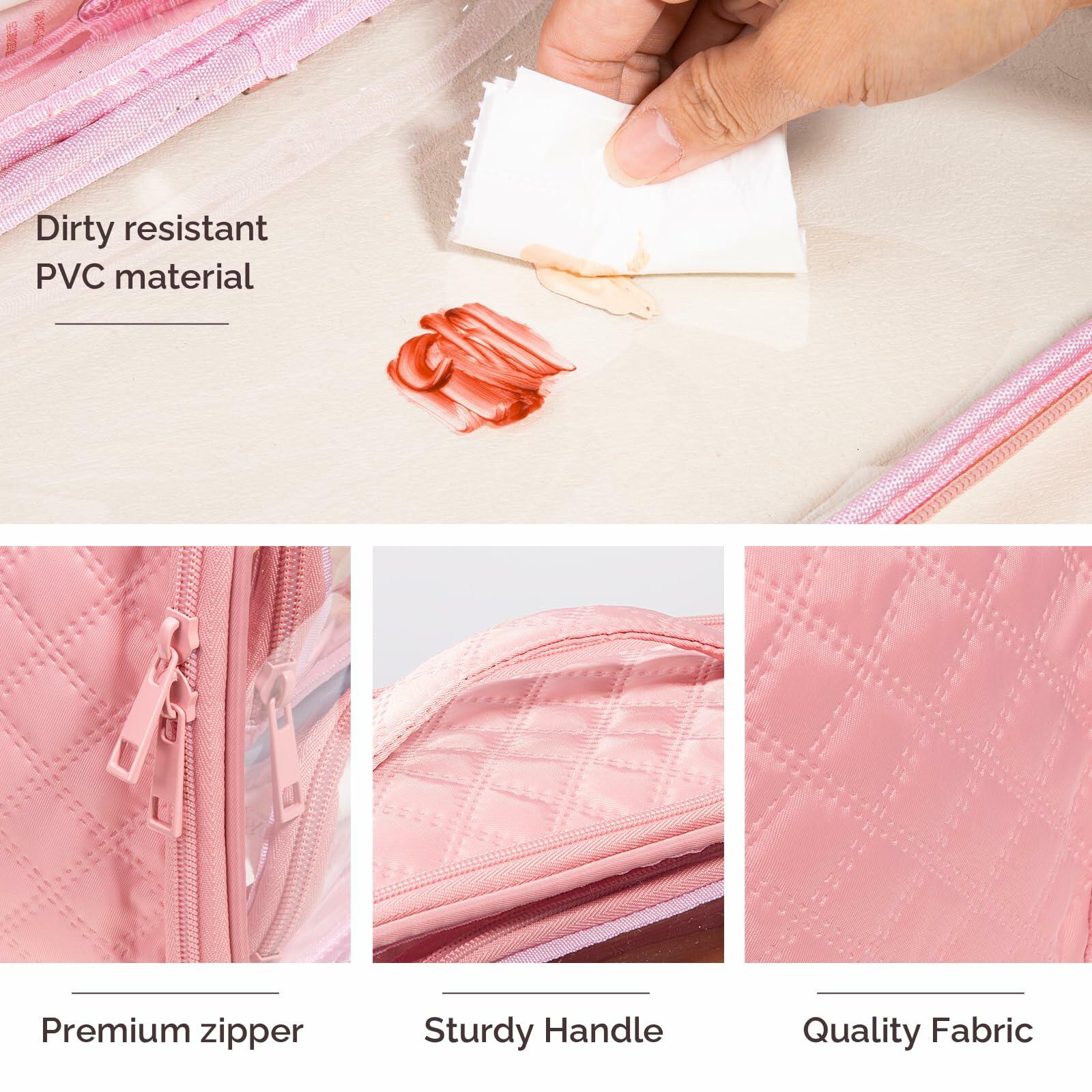 FUNSEED Clear Travel Toiletry Bag Large Organizer Pink Multiple Compartments