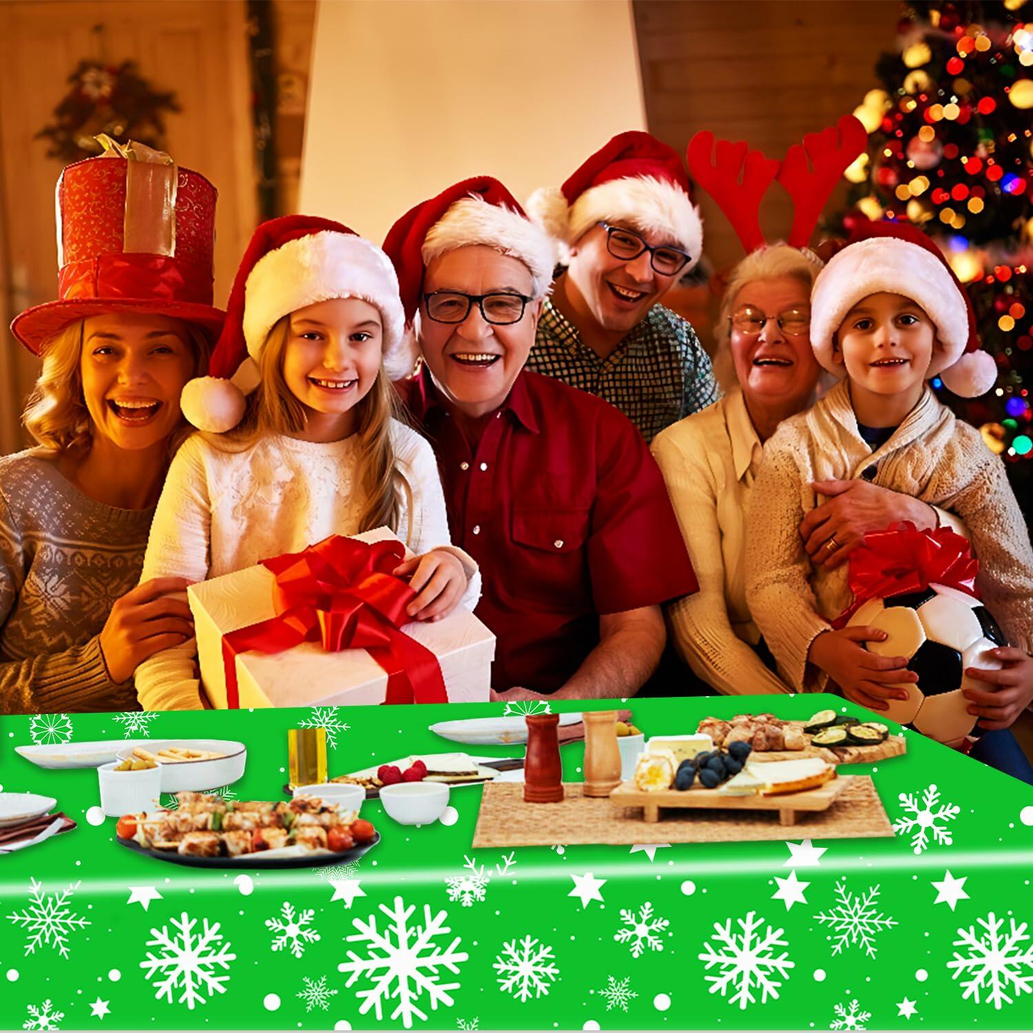 - Festive Holiday Appeal: Elevate your Christmas celebrations with our beautifully designed Christmas Tablecloths, featuring vibrant red and green colors adorned with charming white snowflakes, perfect for creating a joyful atmosphere at any gathering