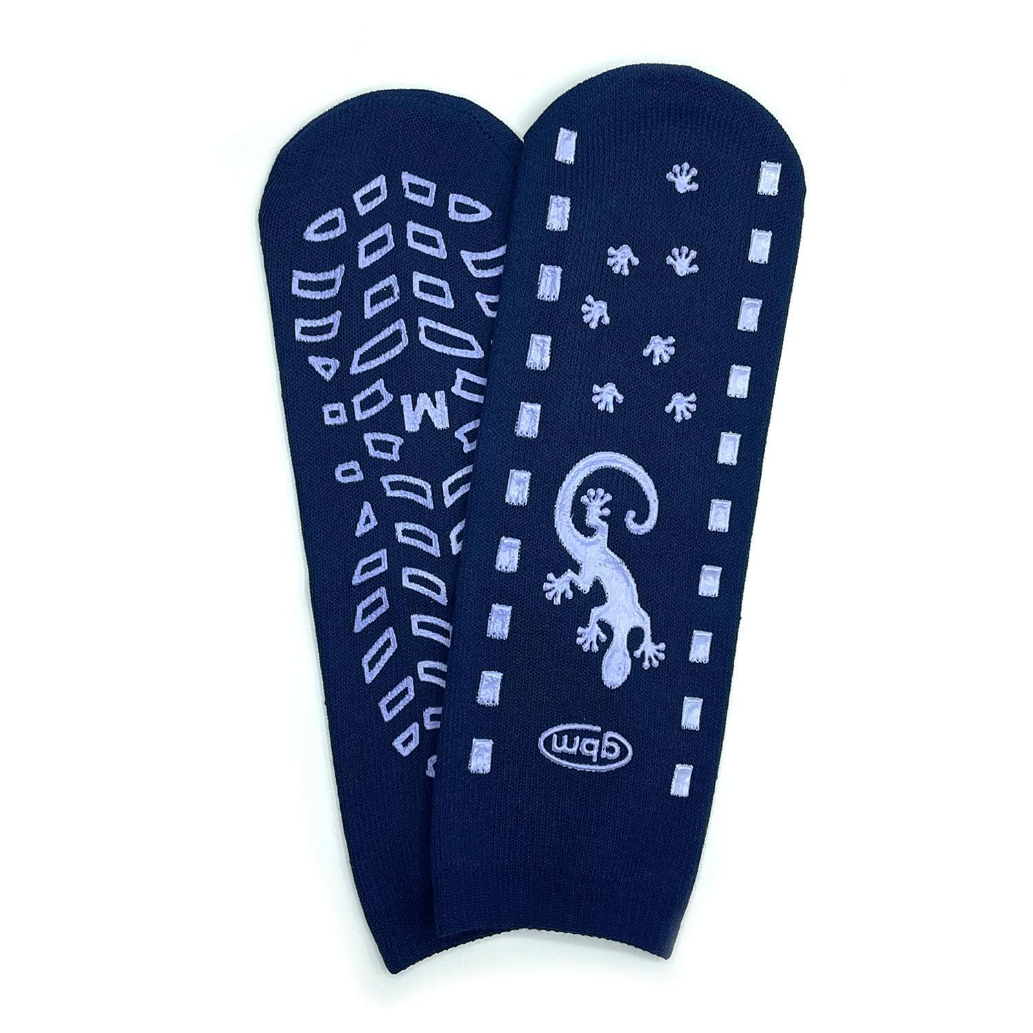 Looking for a set of non-slip socks that can keep you safe and comfortable? Look no further than GBM Geckos! Our double tread non-slip safety socks feature a flexible design and durable construction, making them the perfect choice for anyone who needs to stay steady on their feet. Whether you're headed to the hospital or participating in a yoga class, our non-slip socks are sure to provide reliable support and comfort. Grip socks are recommended to avoid slipping for the elderly, the pregnant, and people in the hospital. These grip socks have an extra-strong, non-skid sticky grip pattern that covers both sides of the sock for universal grip and traction. It provides stability and safety for everyday use at home, as well as enhanced performance for exercises such as yoga, pilates, or barre.