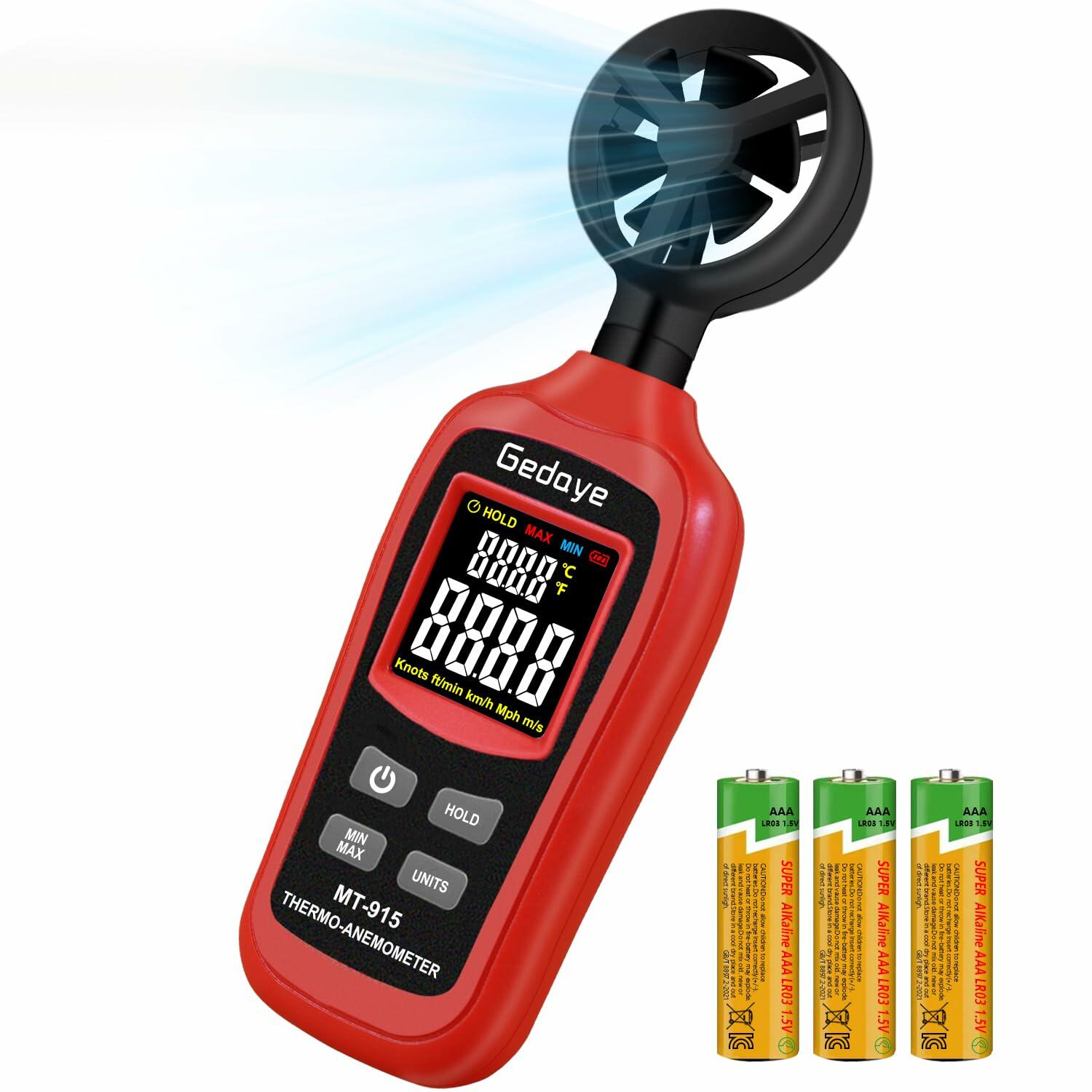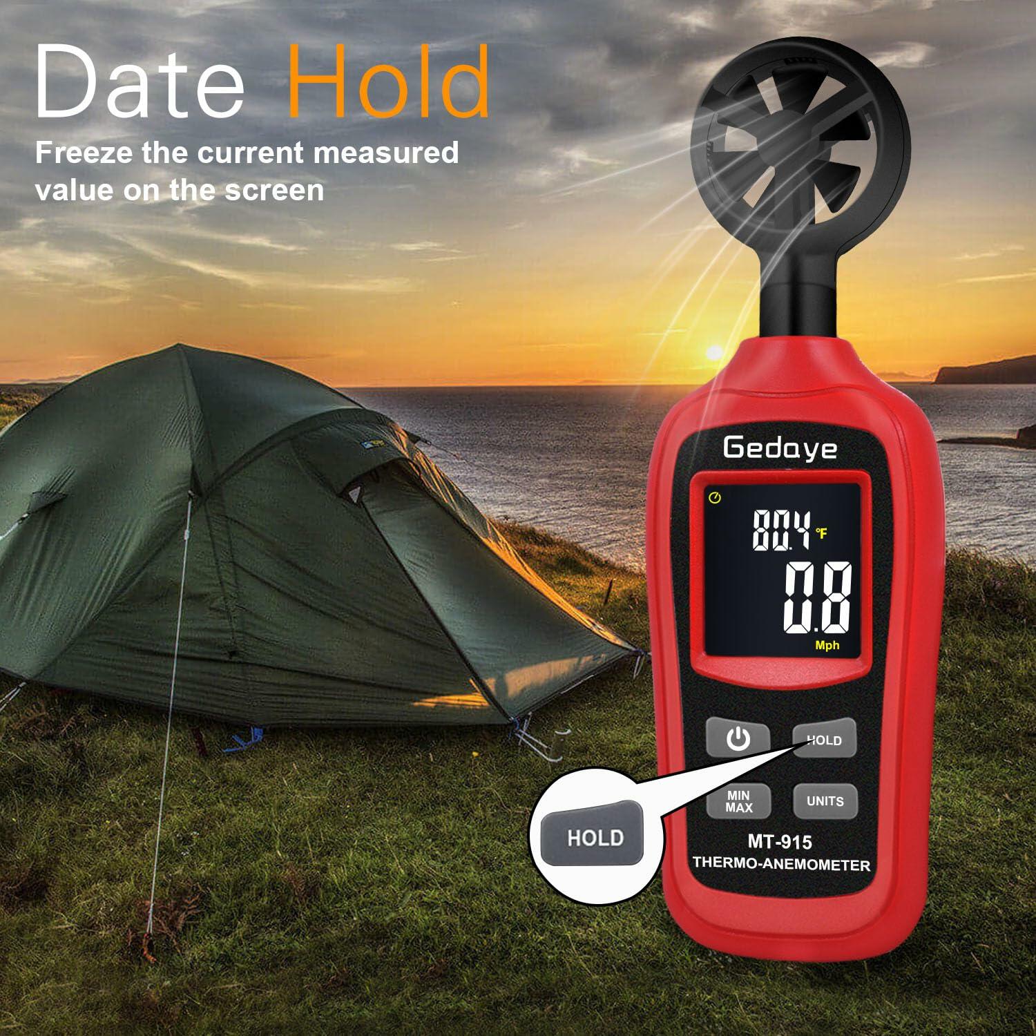 Gedaye Handheld Digital Anemometer Wind Speed Meter Temperature Max Min