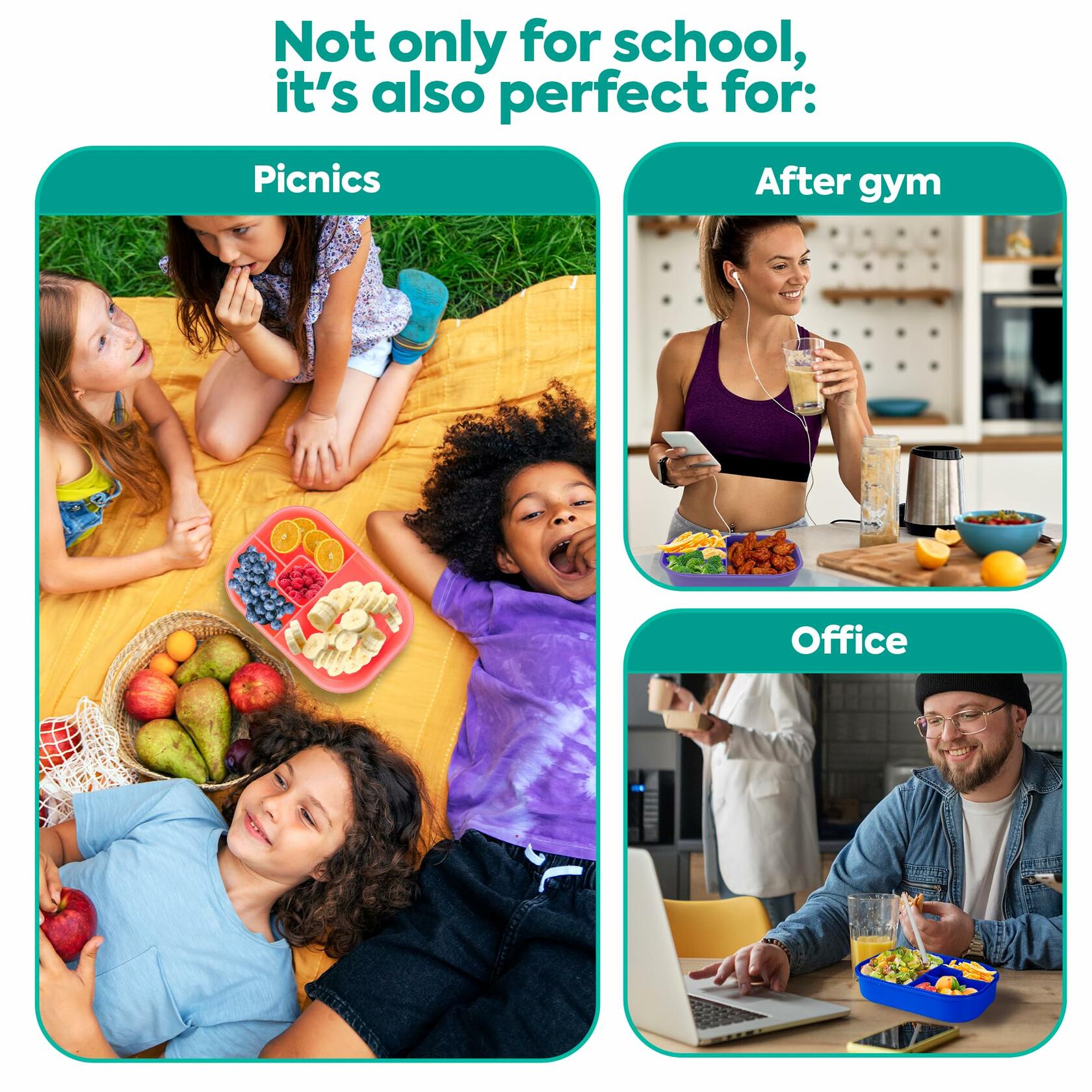 - Antispill Assurance: Say goodbye to messy spills! Our lunch box is equipped with an anti-drip lid, keeping food secure and preventing leaks, even when jostled in a backpack or lunch bag. Mess-Free Meals, Leak-Proof Design, convenient and Stylish Meal Packing.With its 4 compartment snack containers, you can easily pack a variety of foods for your child's enjoyment.