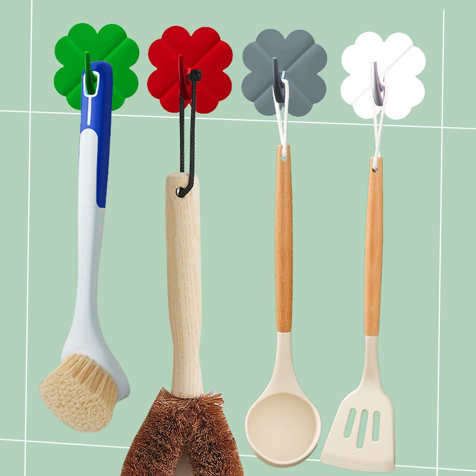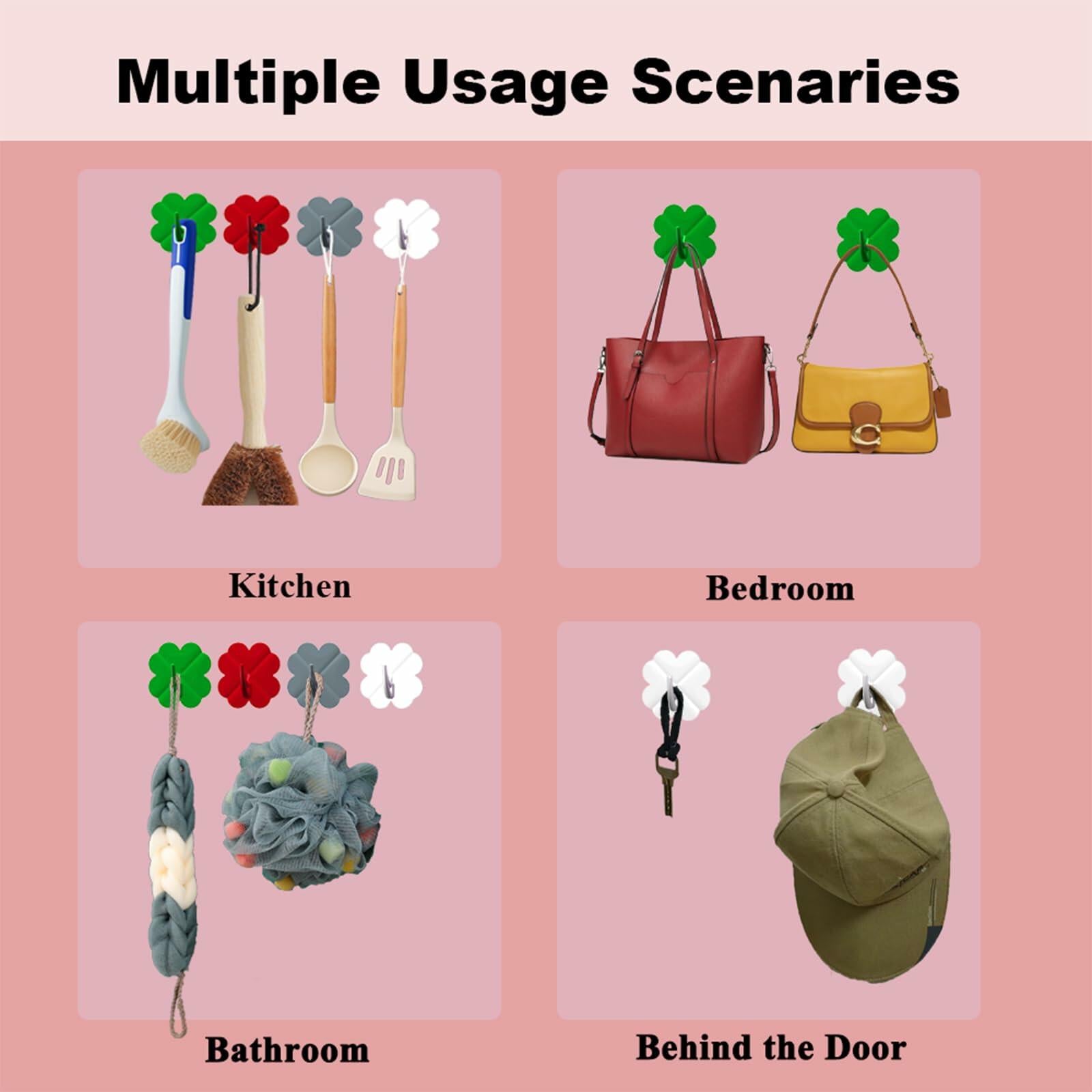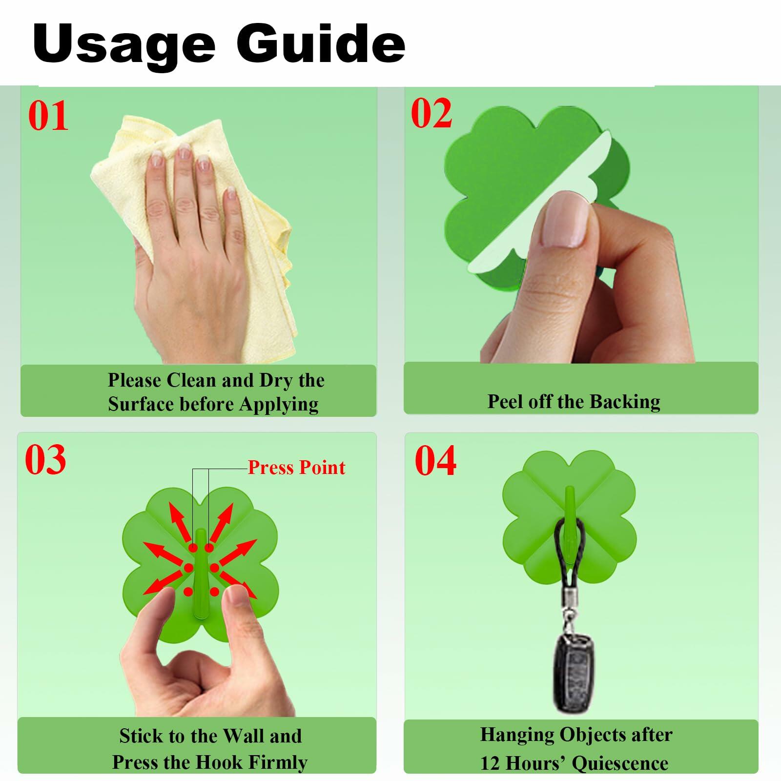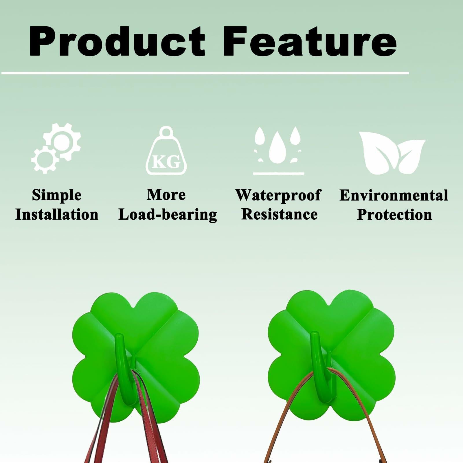 - 【Appearance beautiful no tools installation】. Unique four-leaf lucky grass fashion modeling design, light luxury the body, hooks with unique elongated design, rounded and smooth, easy to hang kinds of items, does not hurt clothes. No need for complicated nails and holes to install, just tear off the back of the adhesive protective layer, paste and press on the wall, glass or door, does not hurt the wall, easy to tear off, no residue damage to the surface, can be used again after replacing the adhesive layer.