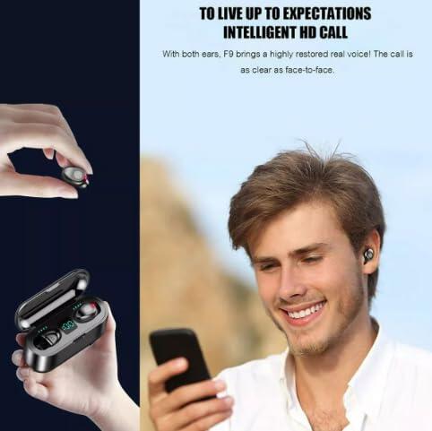 - F9 Headphones Bluetooth headphones sports headphones Noise Cancellation High quality sound Raincoat Integrated microphone Charging case Long duration battery Fast connection Ergonomic design Compatible with iOS/Android devices Touch control Compact case wireless headphones Bluetooth 5.0 Automatic pairing light Stable during exercise Quality guarantee