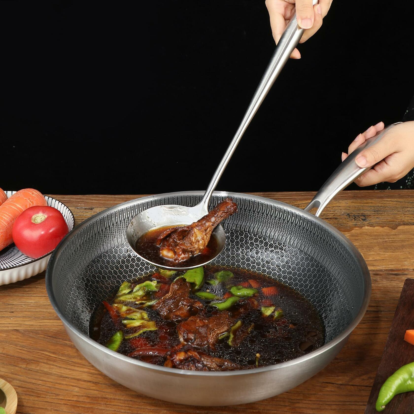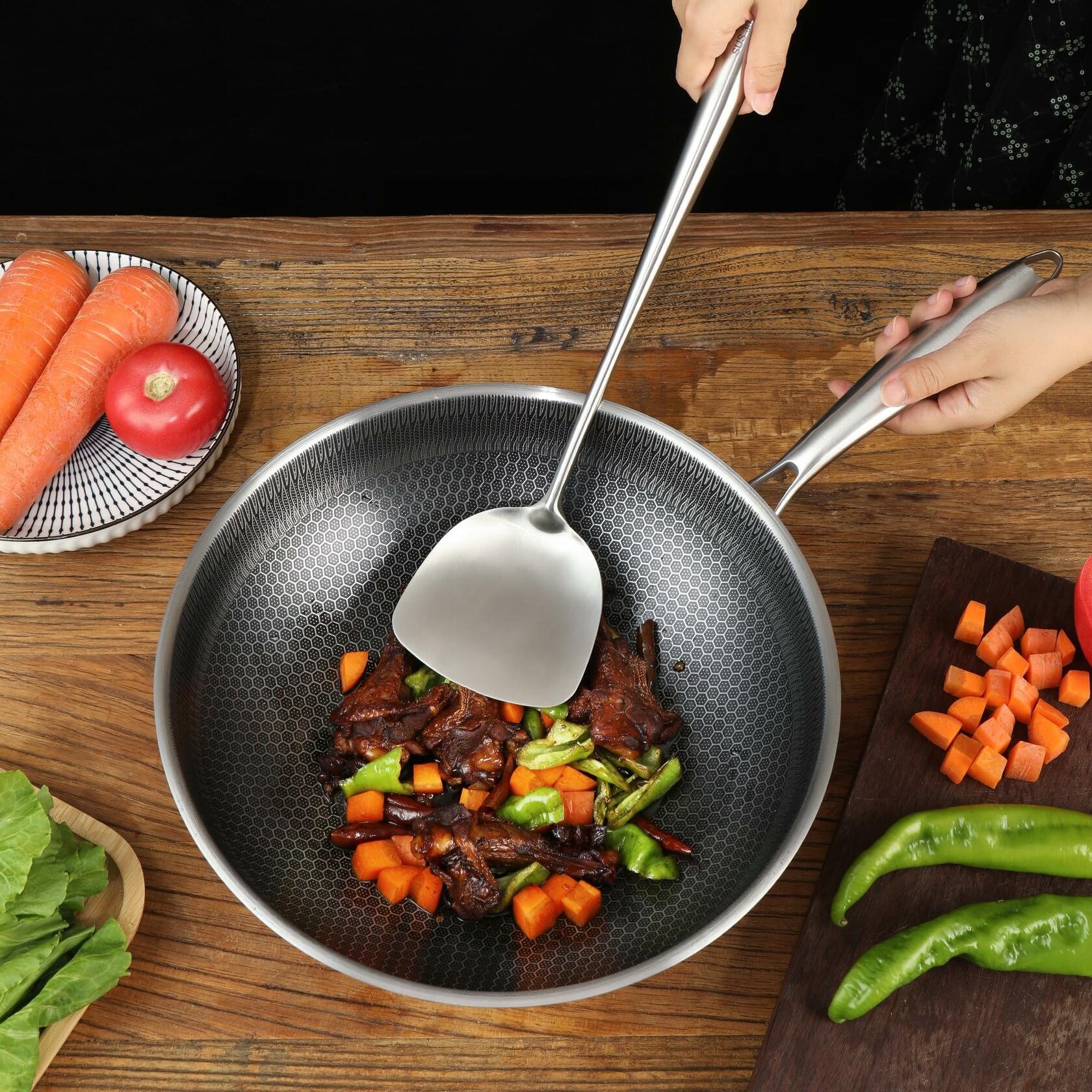 Wok Spatula and LadleTool Set, 17inches Long Handle Spatula for Wok, 304 Stainless Steel Wok Spatula,Perfect for Your Wok