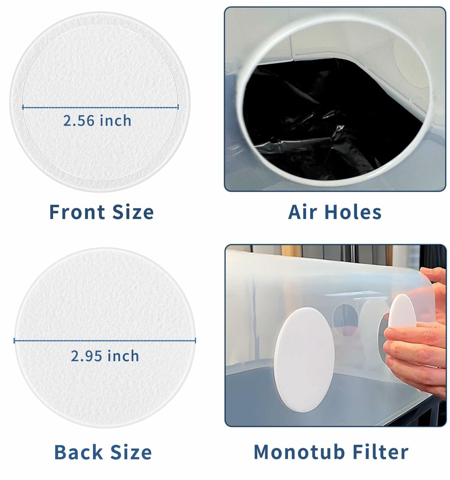 - ✅ Perfect Fit for Standard Tubs : With a 2.95-inch diameter and 2mm thickness, these filters are tailored to cover holes up to 2.5 inches. The 0.2-inch adhesive border ensures a firm, airtight seal around the vent.