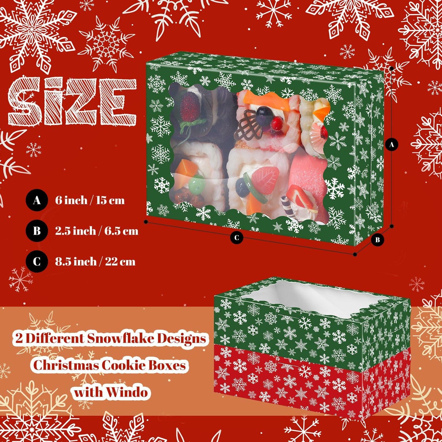 Gersoniel 24 Pcs Christmas Cookie Boxes with Window 8.6x6x2.5 Inch Red Green