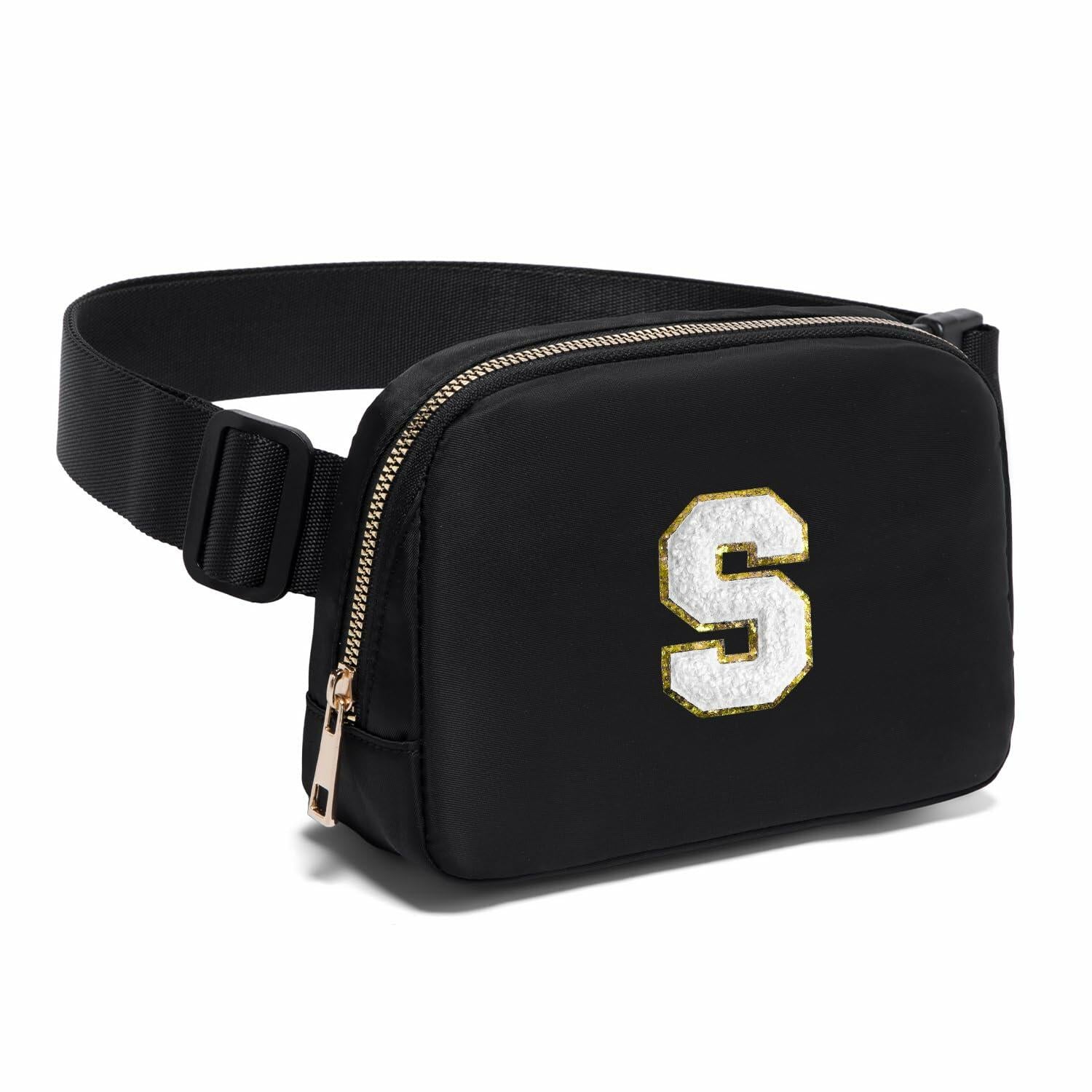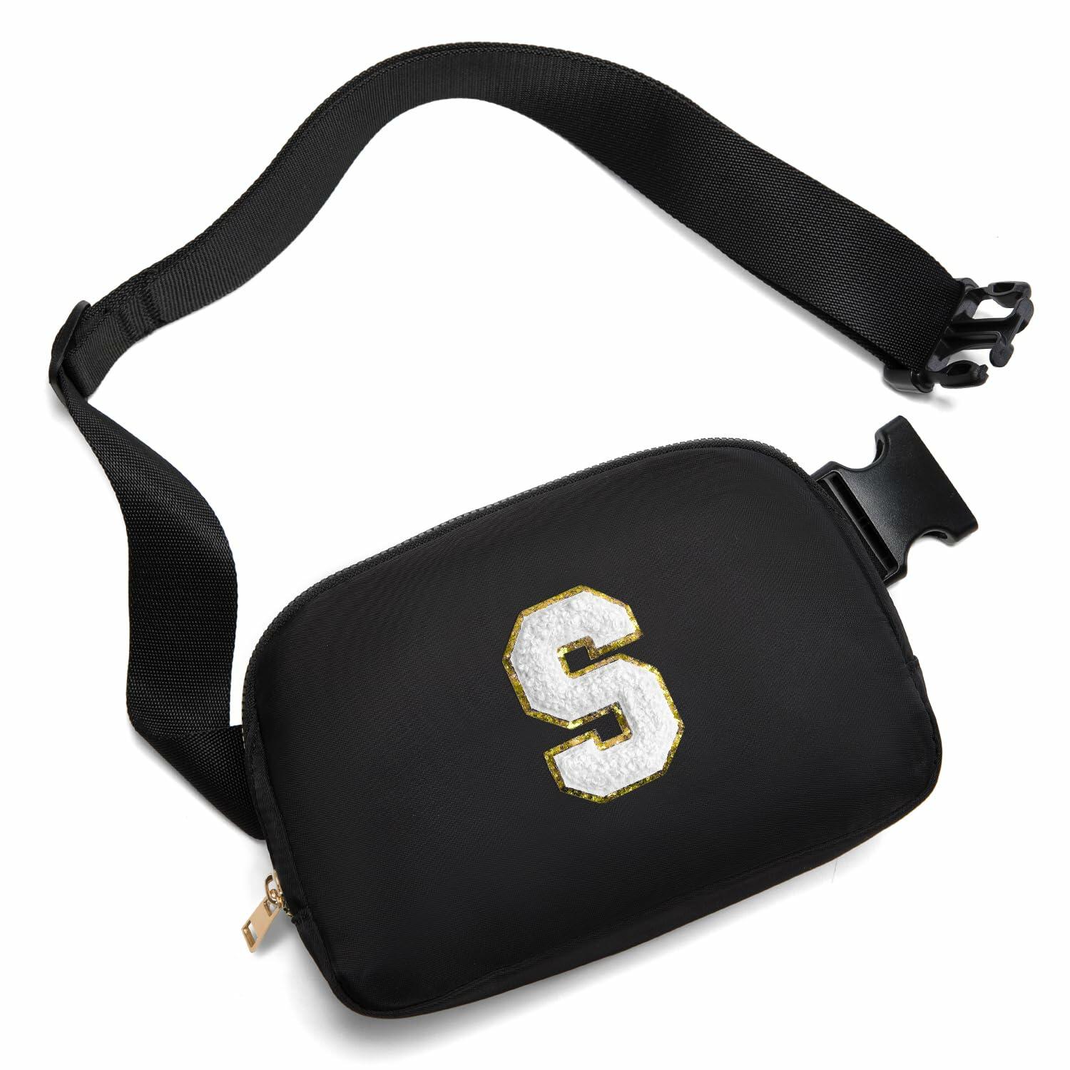 Gitus Personalized Fanny Pack Crossbody Bag for Girls Black Letter Patch