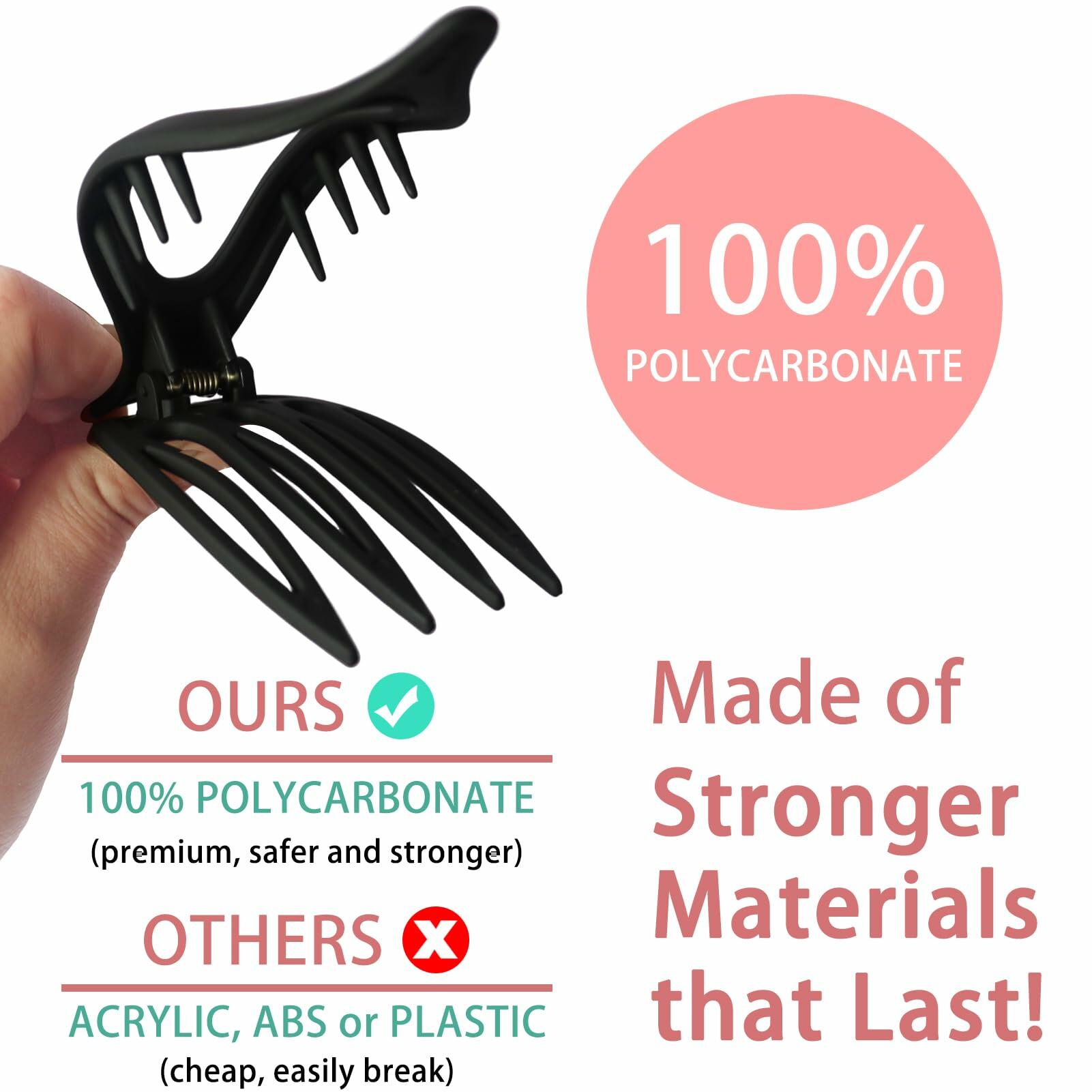 - Durable to Use & Firmly Hold - Engineered with 100% polycarbonate and reinforced steel springs, these claw clips outlast regular plastic clips. The deep-grip teeth of these flat hair clips securely hold any type of hair - even during intense workouts or windy days