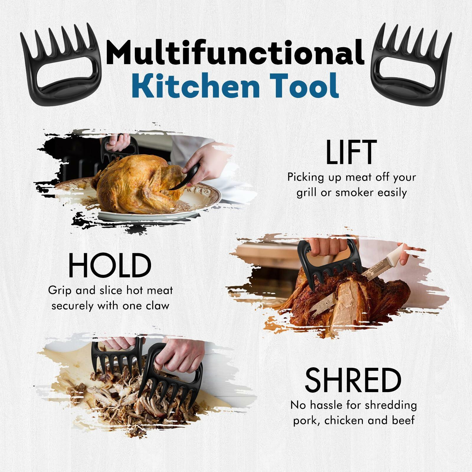 - EFFORTLESS CLEANUP & STORAGE: Enjoy maximum convenience! Both the Meat Shredder Claws and the Silicone Griddle Mat are completely dishwasher safe for quick, thorough cleaning. The claws feature a locking mechanism for compact storage, and the mat is flexible with a hook for easy hanging – keeping your outdoor cooking tools & accessories ready for the next cookout.
