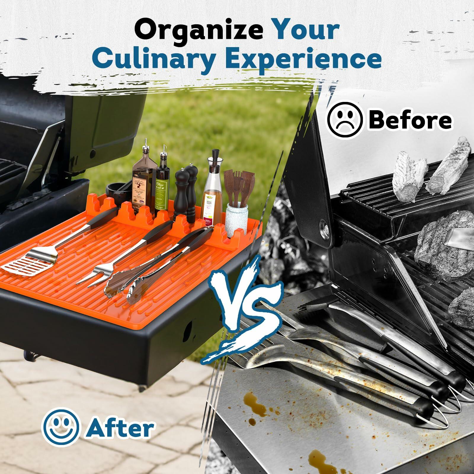 - ULTIMATE BBQ TOOL DUO - UPGRADE YOUR GRILL GAME: Get the essential pair every grill master needs! Effortlessly shred pulled pork, chicken, or turkey with our durable Meat Shredder Claws, AND keep all your spatulas, spoons, and grilling tools organized, clean, and within reach on your grill side shelf with our large, heat-resistant Silicone Griddle Tool Mat for Blackstone. This combo tackles prep and organization in one, essential outdoor cooking tools & accessories.