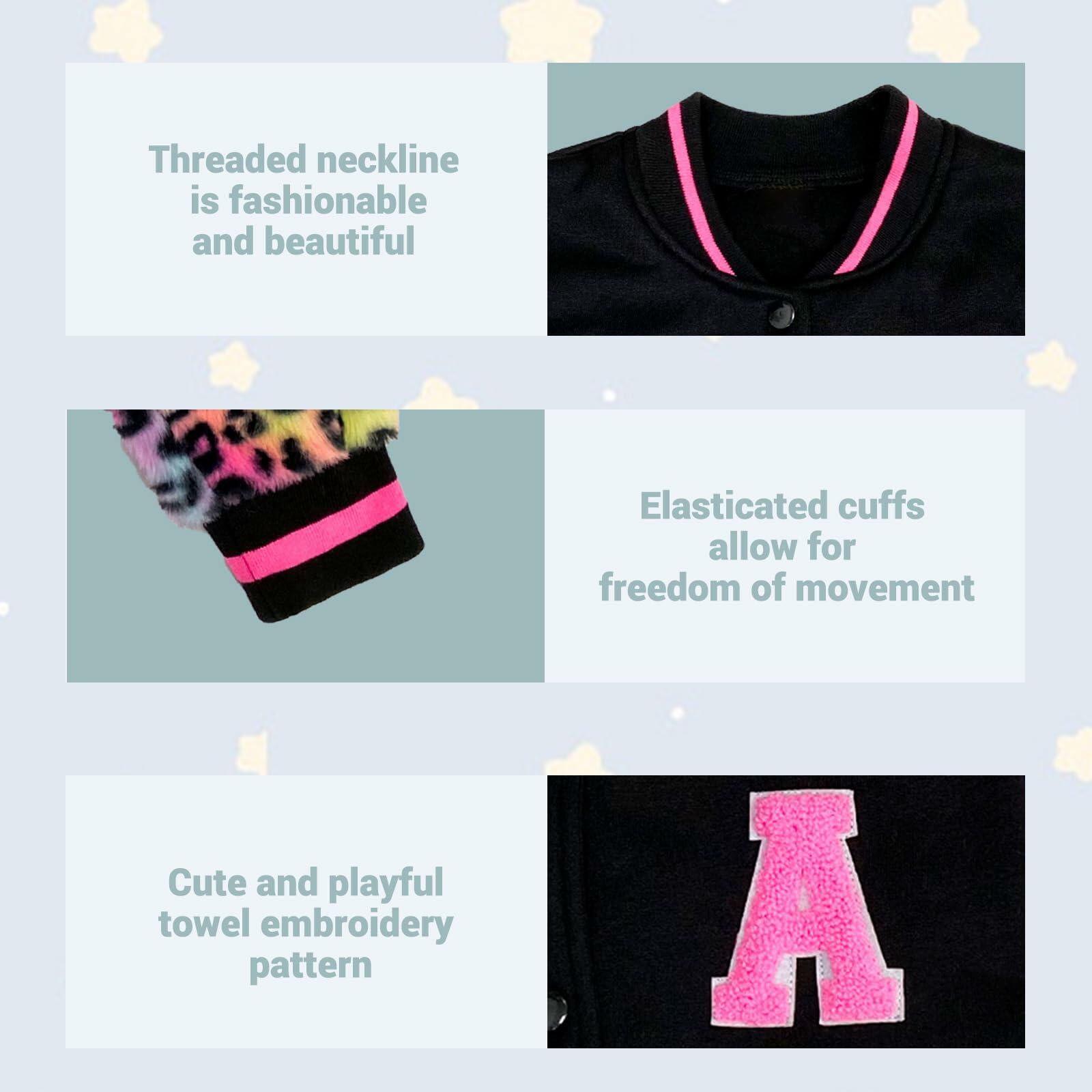 - 5.Single-Breasted Design: The kids baseball jackets feature a button front, letter patched, colorblock, pocket, baseball collar, single-breasted design that showcases a blend of fashion and classic style.