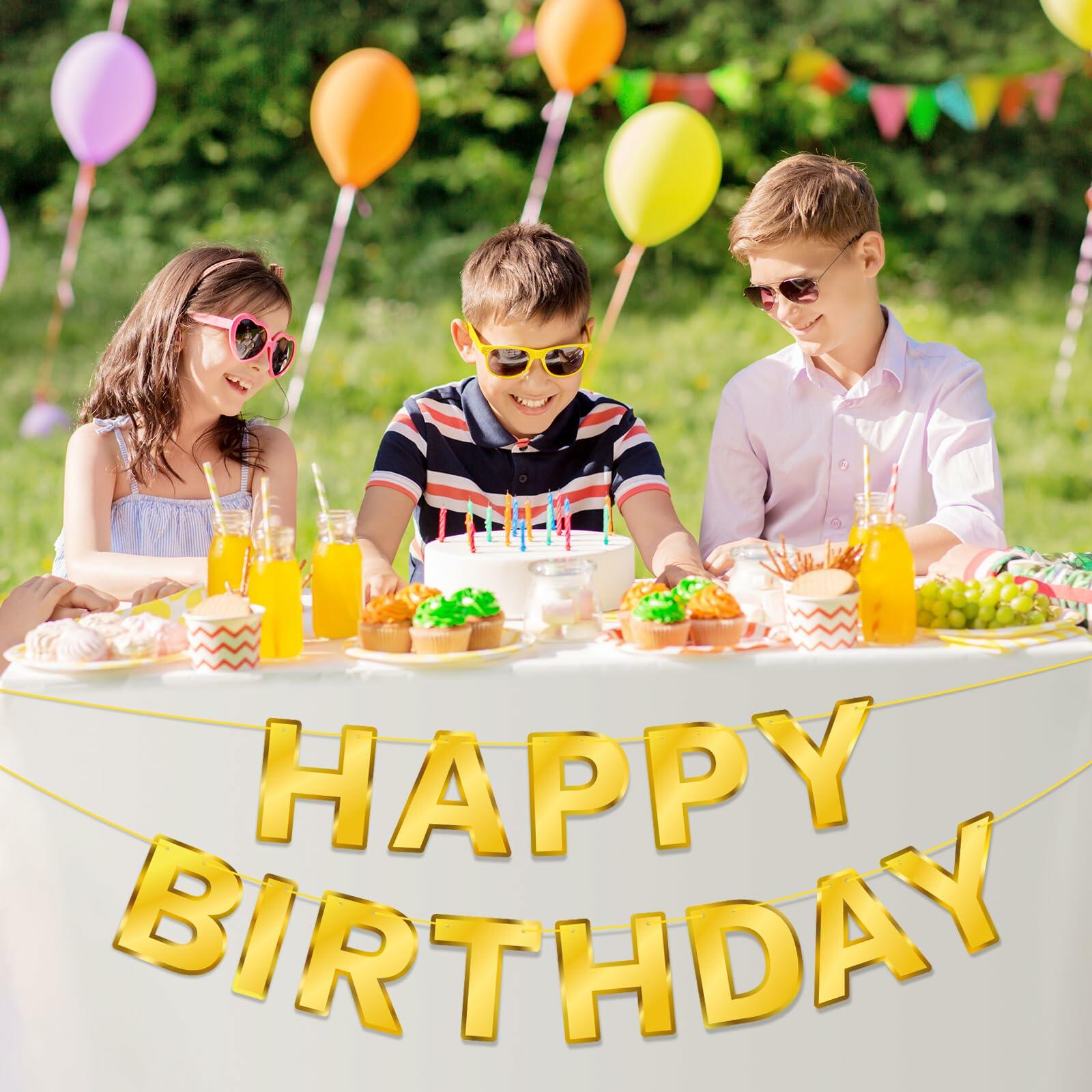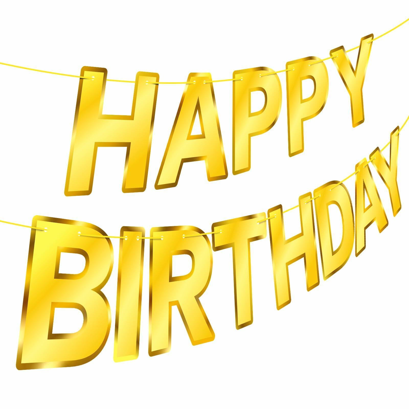 Gold Happy Birthday Banner Sign Garland Party Decoration Kids Baby Party