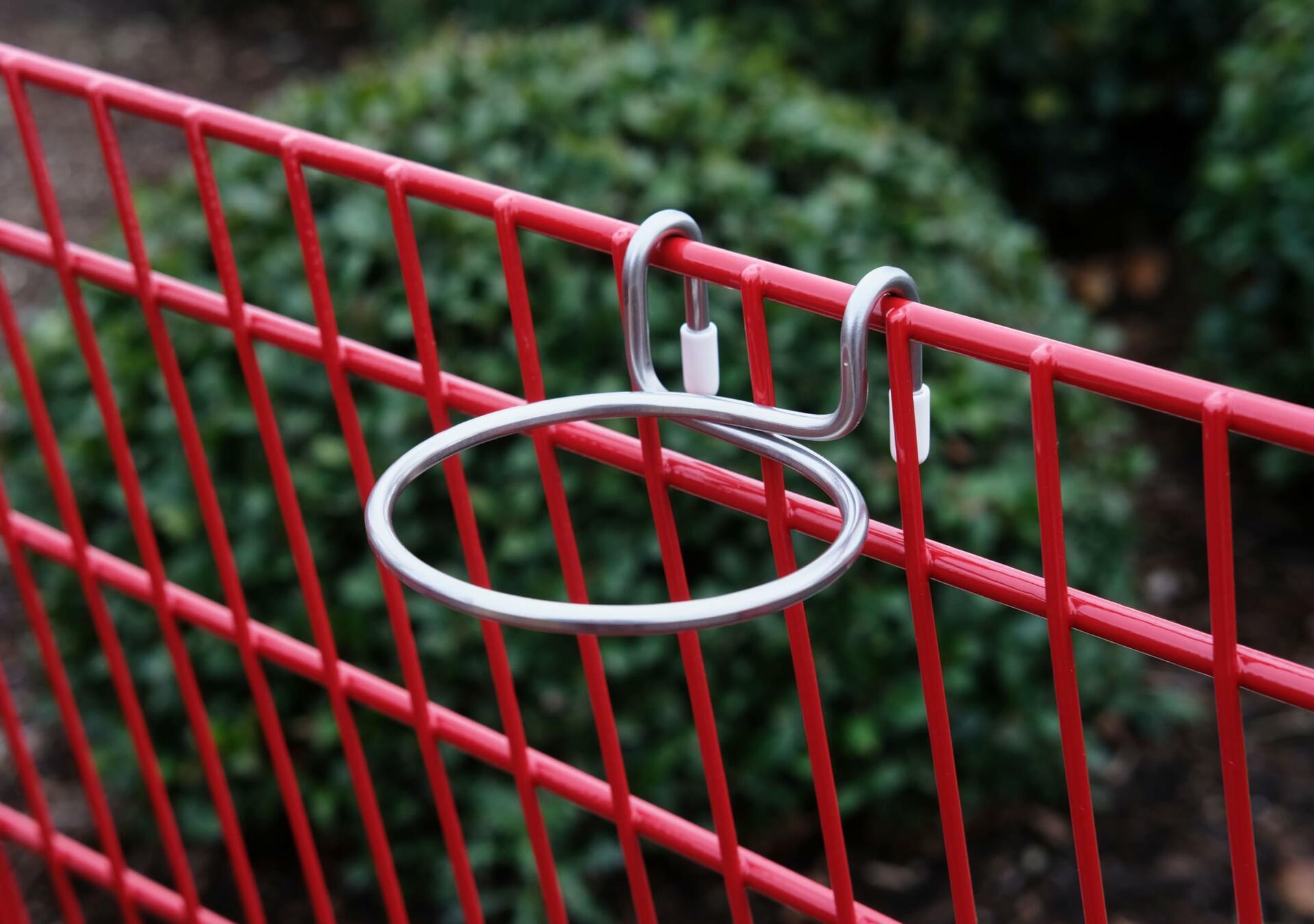 Keep your beverage close at hand with our shopping cart cup holder! Simply slide the sturdy hanger over the top edge or inner rail of your shopping cart and insert your beverage. Refresh on the go! For use with plastic and paper cups.