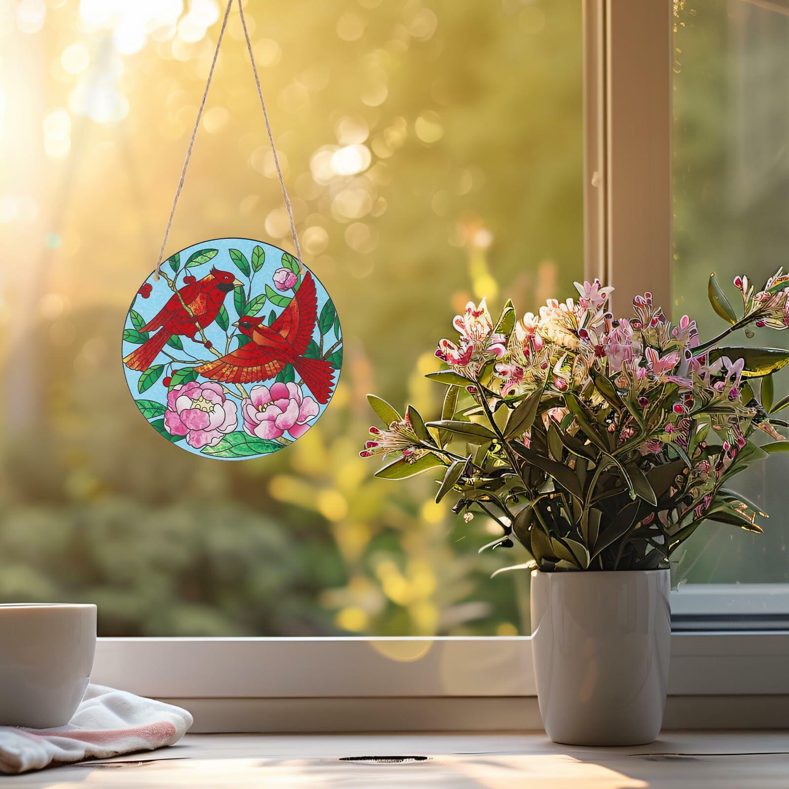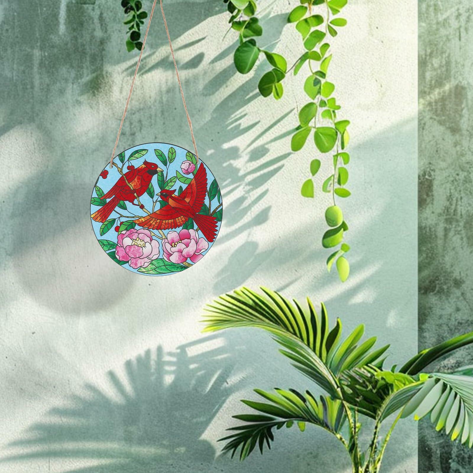 Gosknor Cardinal Light Catcher Acrylic Stained Glass Window Hanging 5.9x5.9in