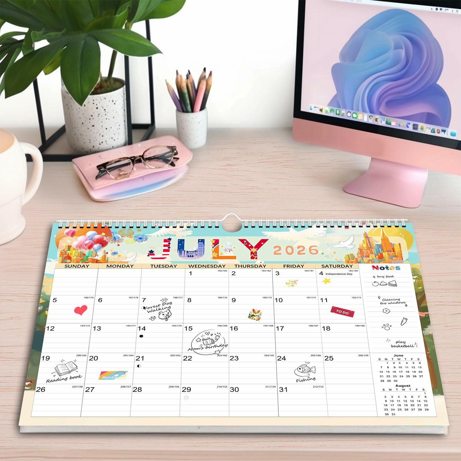 Theme Design - This 2026 Wall Calendar covers 18 months, From January 2026 to June 2027, includes 12 theme designs. The calendar size is 17 "x 12" (A3 paper Size), ensuring sufficient writing space for you to easily arrange work and life, improving work efficiency and quality of life, which can hold daily records, lists, and plans for the next year and a half Celebrate Every Month: Each month boasts a distinct theme reflecting significant holidays, bringing a touch of cheer to your space. Ample Space for Organization: The generous A3 size and large date blocks provide plenty of room for jotting down appointments, to-do lists, and notes. Premium Quality: Crafted from premium paper with clear, odorless printing, it ensures a smooth writing experience and prevents ink bleed-through. Secure and Durable: The sturdy metal coil and double hang hole ensure your office wall calendar 2026-2027 hangs securely on any wall or desk. Versatile and Giftable: Perfect for homes, offices, or kid's room, this large wall calendar is a thoughtful gift for anyone looking to add a touch of style and organization to their life.