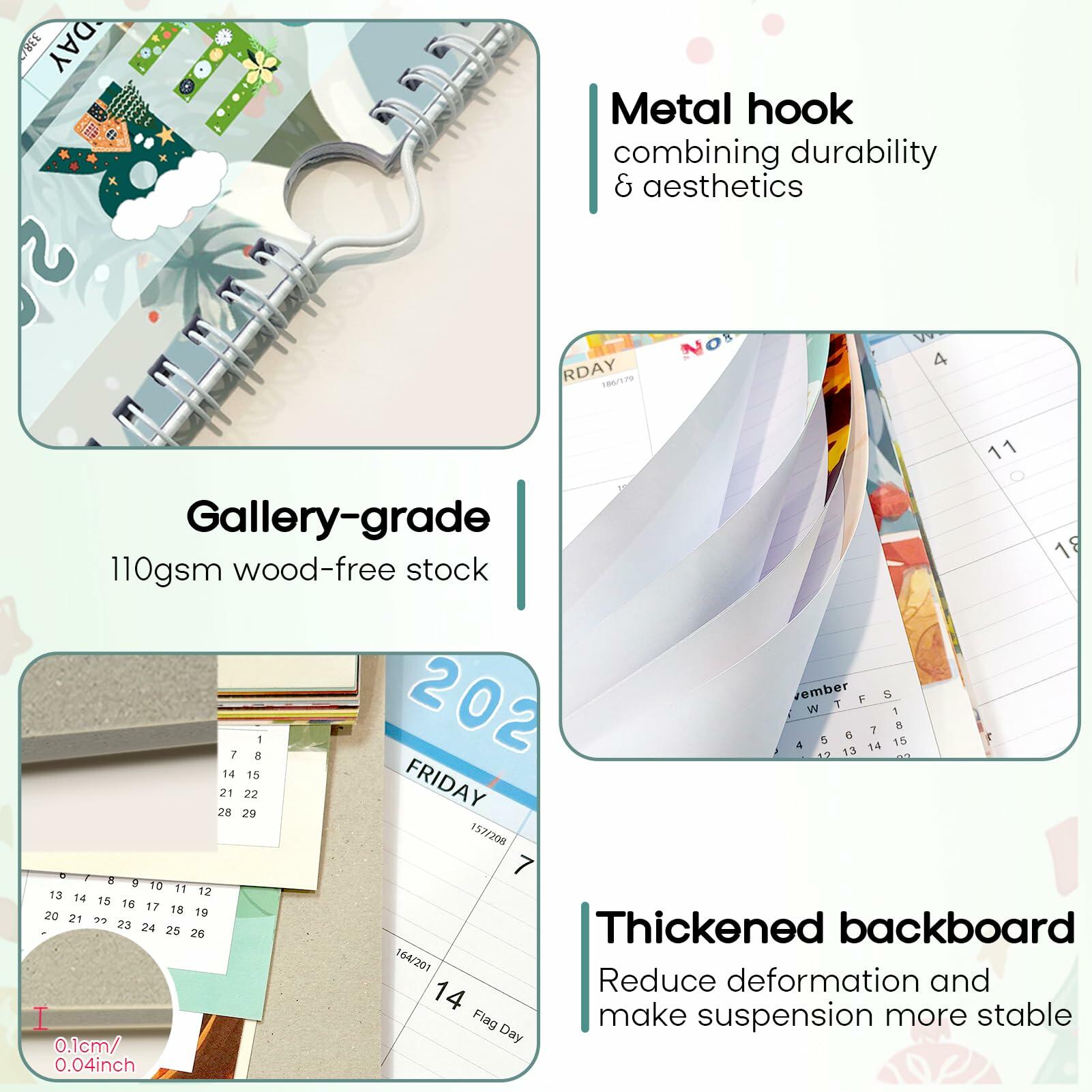- ✨Functional Details - High quality thick paper eliminates the problem of ink penetration, ensuring smooth and silky writing. White double line binding+hanging hole, can be hung freely, and the sturdy hard backboard enhances the hanging stability of the 2026 calendar wall