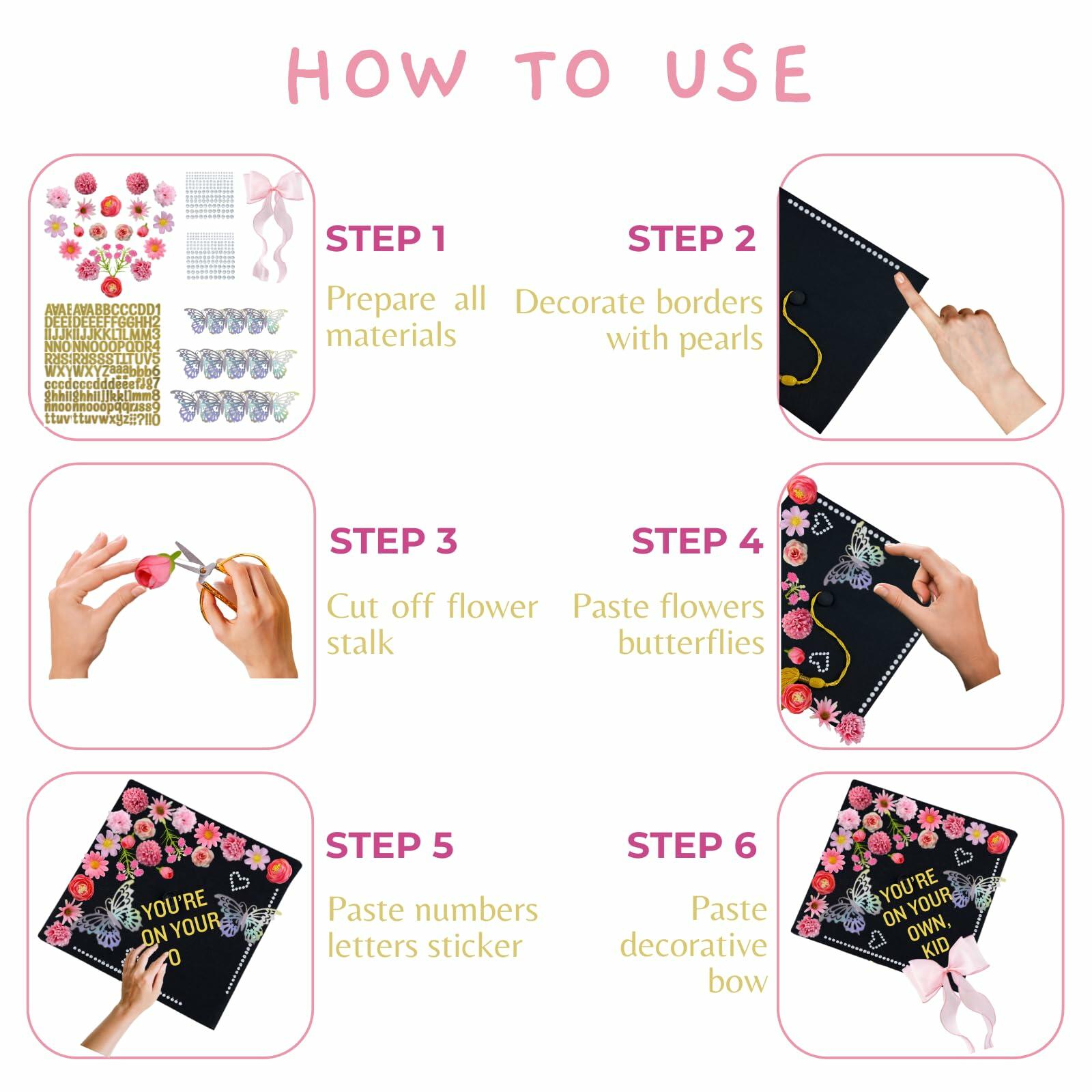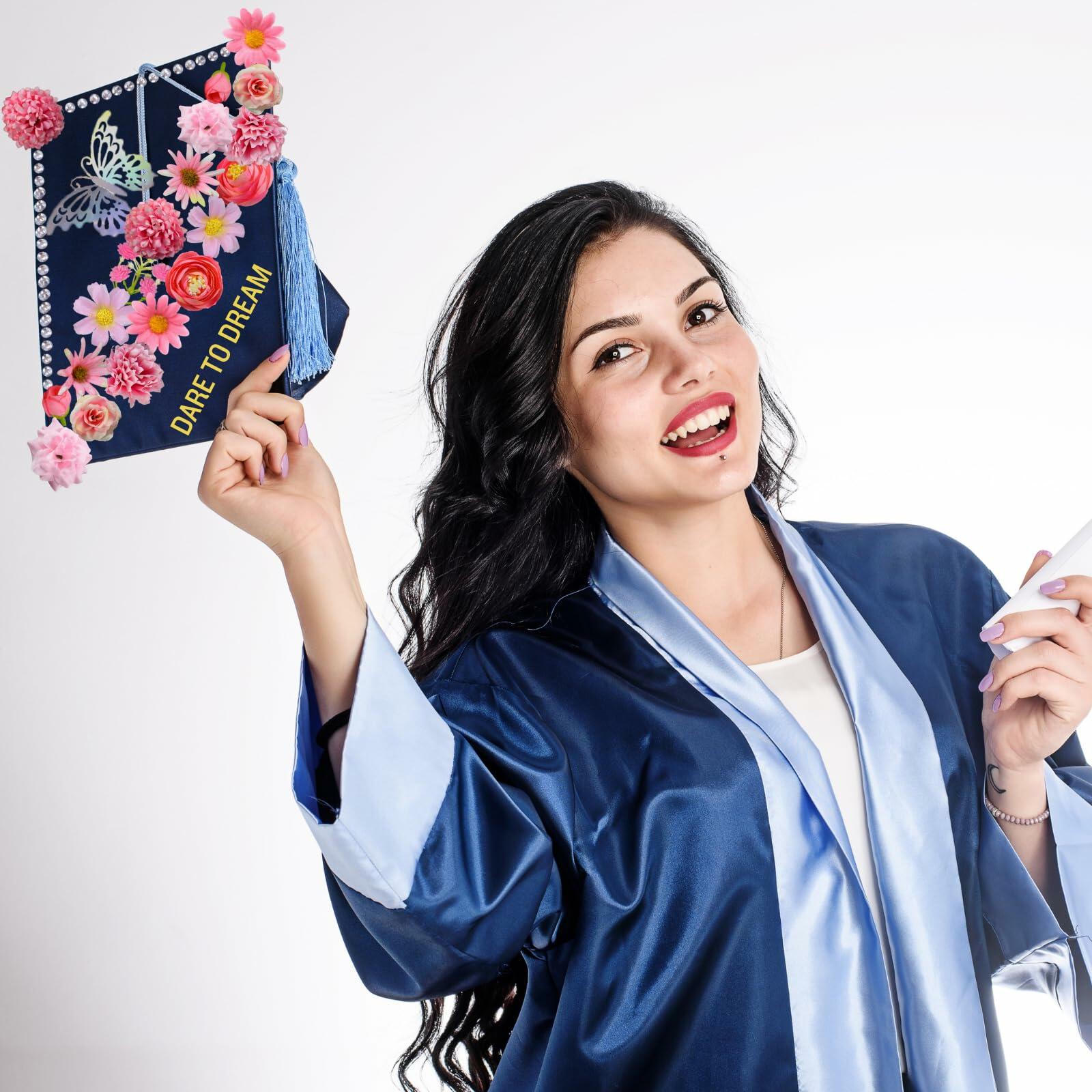 Graduation Cap Decorations 2025 Grad Kit Flowers Butterfly Pearls DIY Set