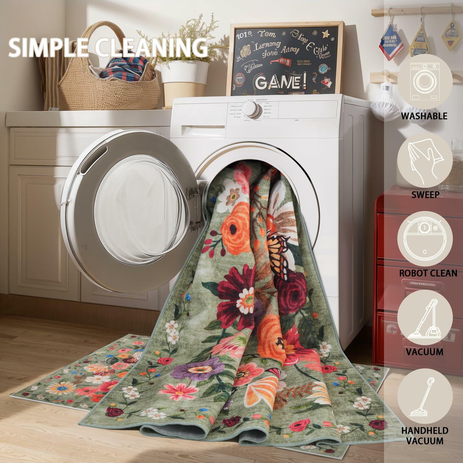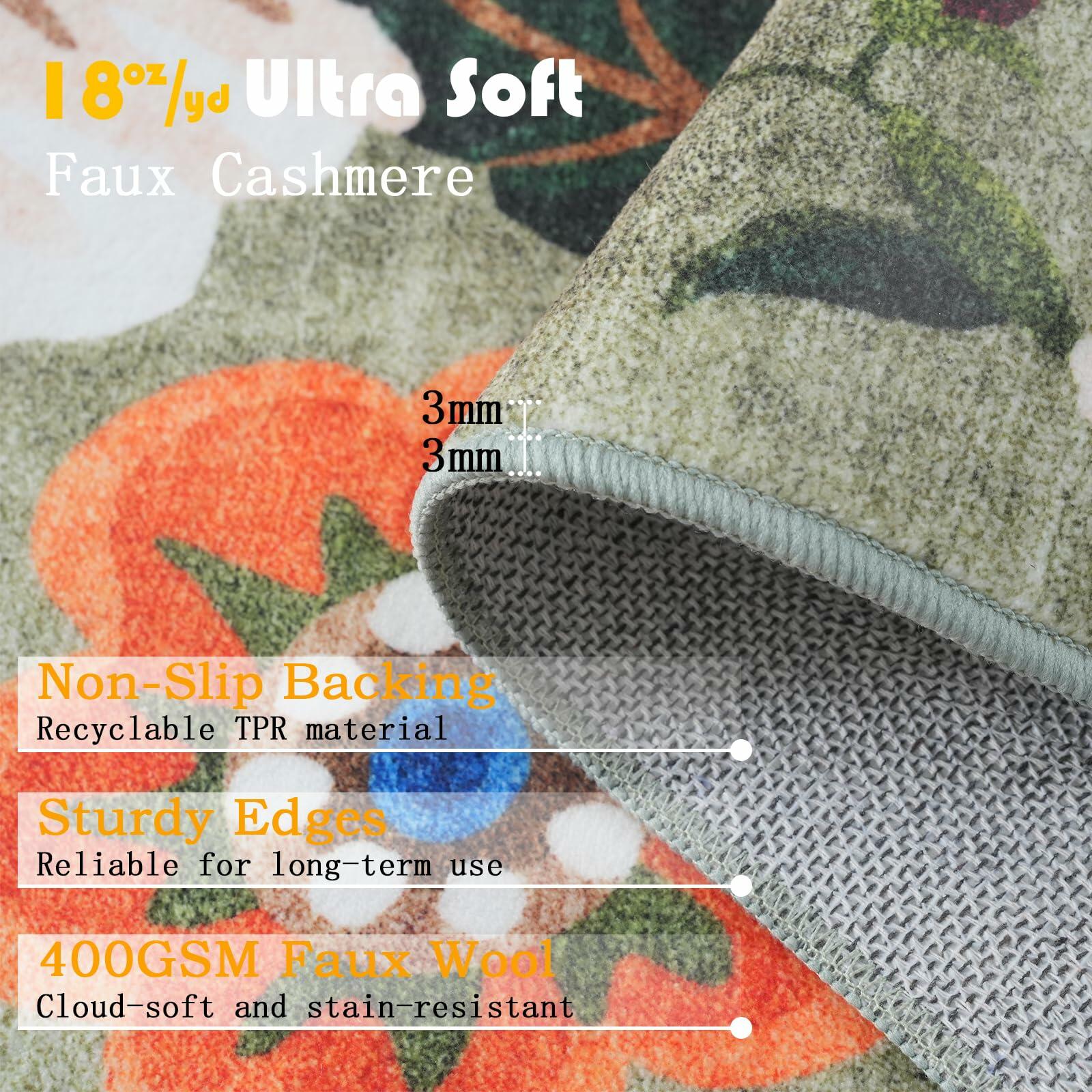 GRAMBET Area Rug 24x17 Inch Non Slip Low Pile Floral Green Garden
