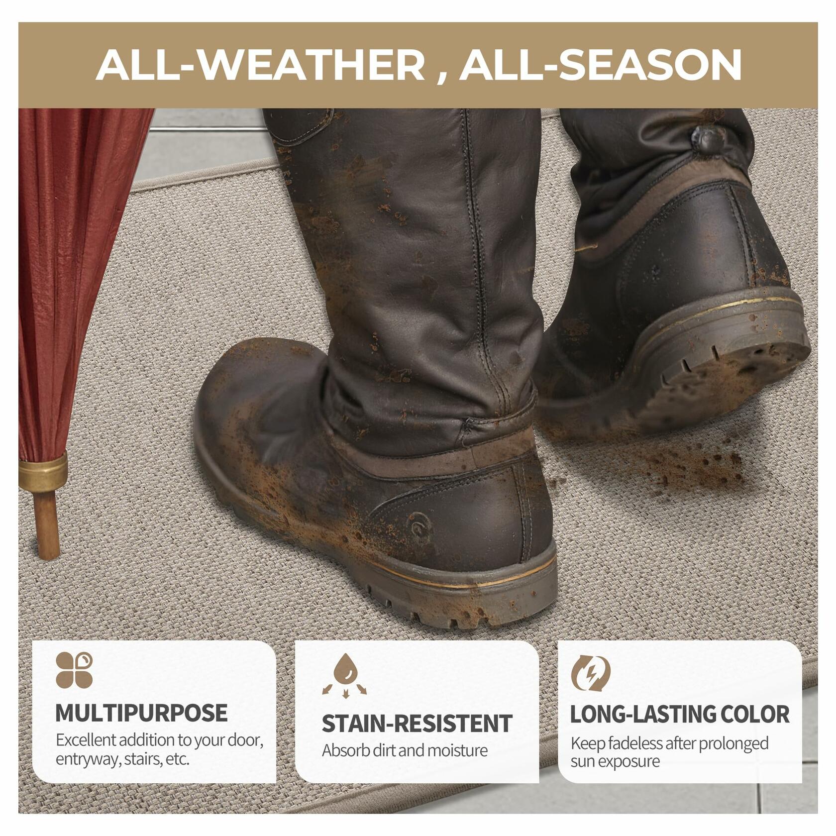- [Low Profile & Versatile] With a low-profile design, this porch rug can easily fit under most doors without jamming or curling. Our entrance rug features a simple design with classic, versatile colors. Ideal for high-traffic areas, such as front doors, back doors, entryways, kitchens, garages, and patios.