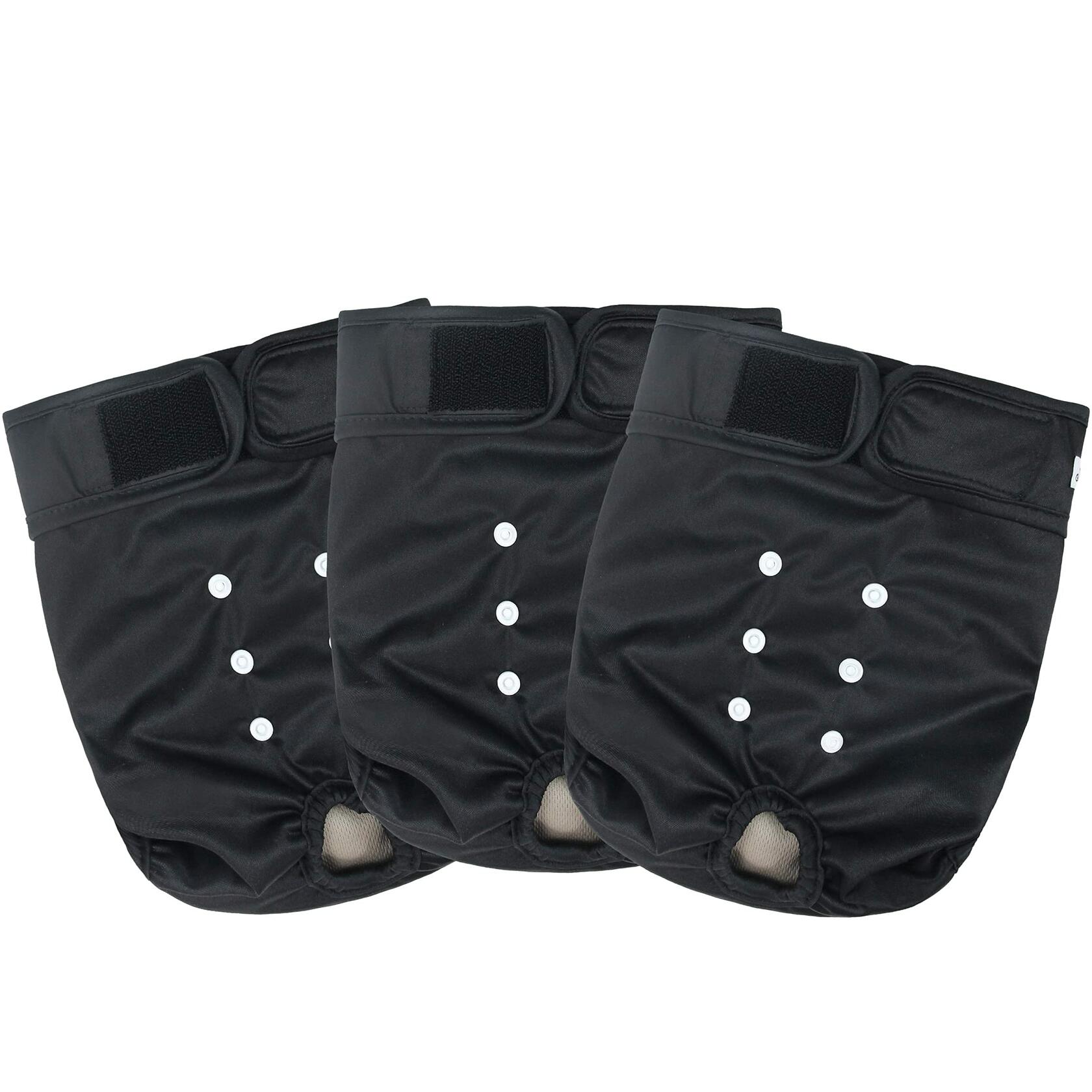 - Adjustable Hook & Loop and Snaps - The female washable dog diapers you choose should be tailored to your dog’s waist. The overlapping Hook & Loop design on the dog diaper makes a great fit. Snaps also work well to adjust the length and width of the puppy diapers.
