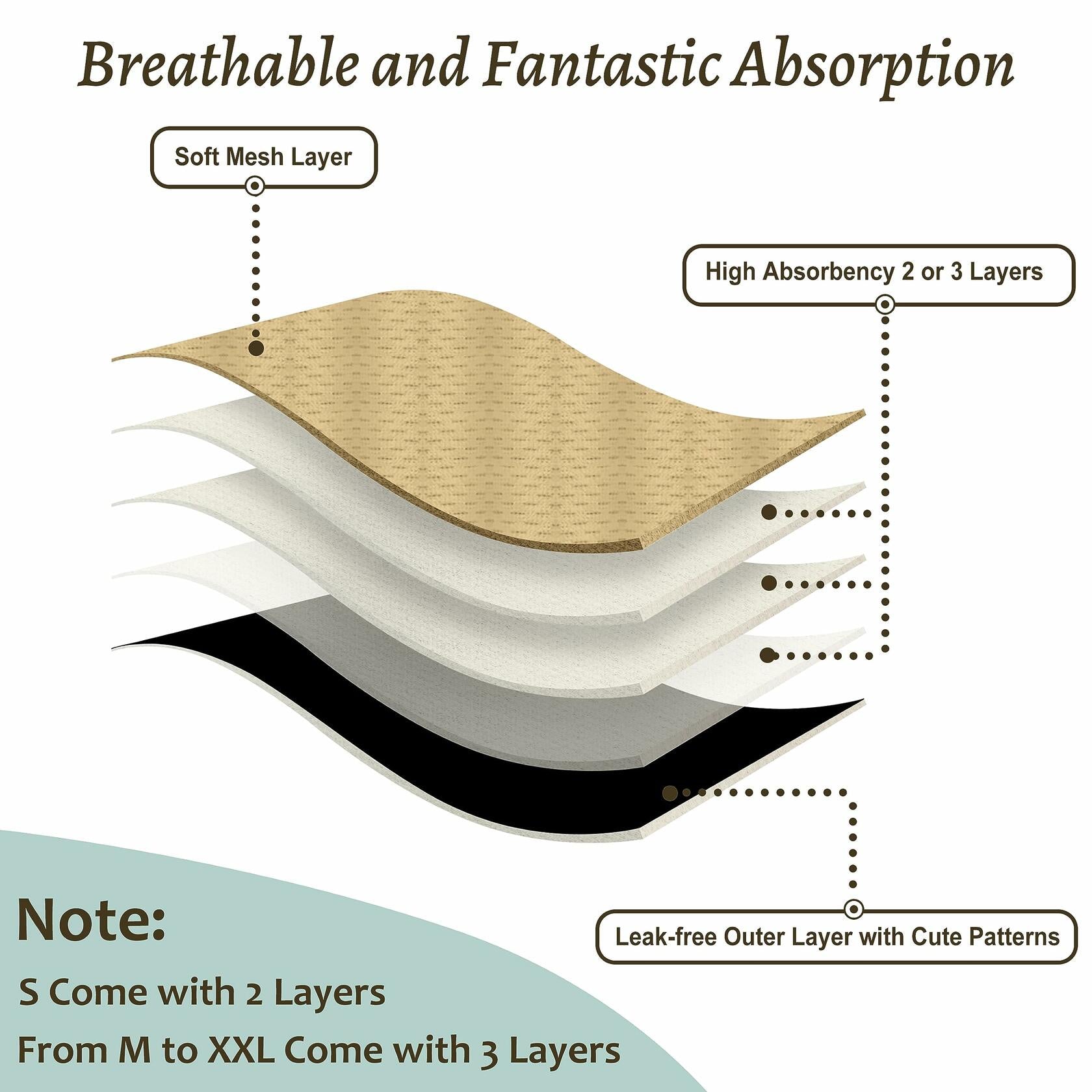 - High Absorbency and Leak-free - Designed with comfort in mind, these dog diapers have a sewn-in super absorbent pad to hold liquid in the pad, bird-eye mesh fabric against skin and a leak-free exterior PUL shell and a snug elastic tail hole to make doggie diapers totally leak-free.