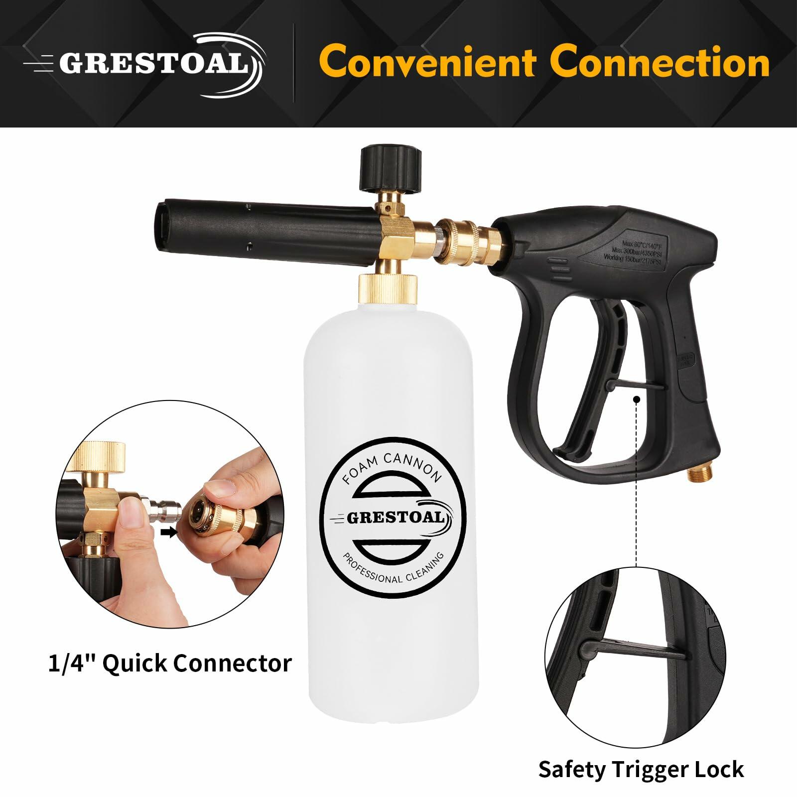 GRESTOAL Pressure Washer Gun Foam Cannon 5 Nozzles 1L 3000 PSI Black