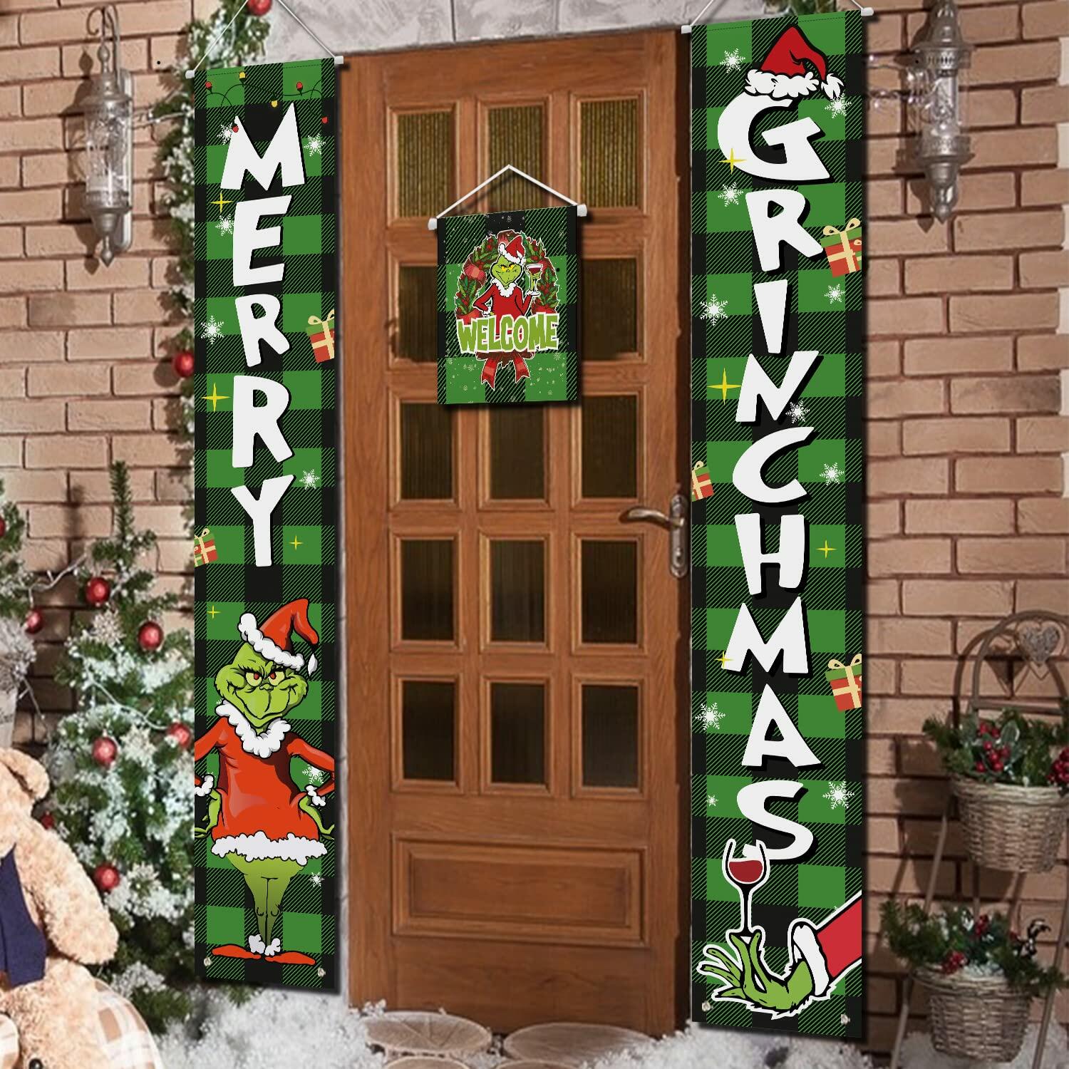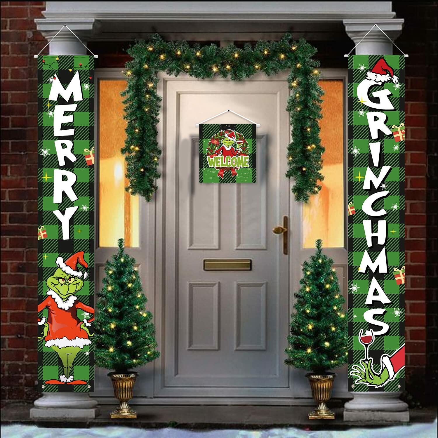 Griinchs Christmas Banner Set of 3 Indoor Outdoor Xmas Porch Wall Decor