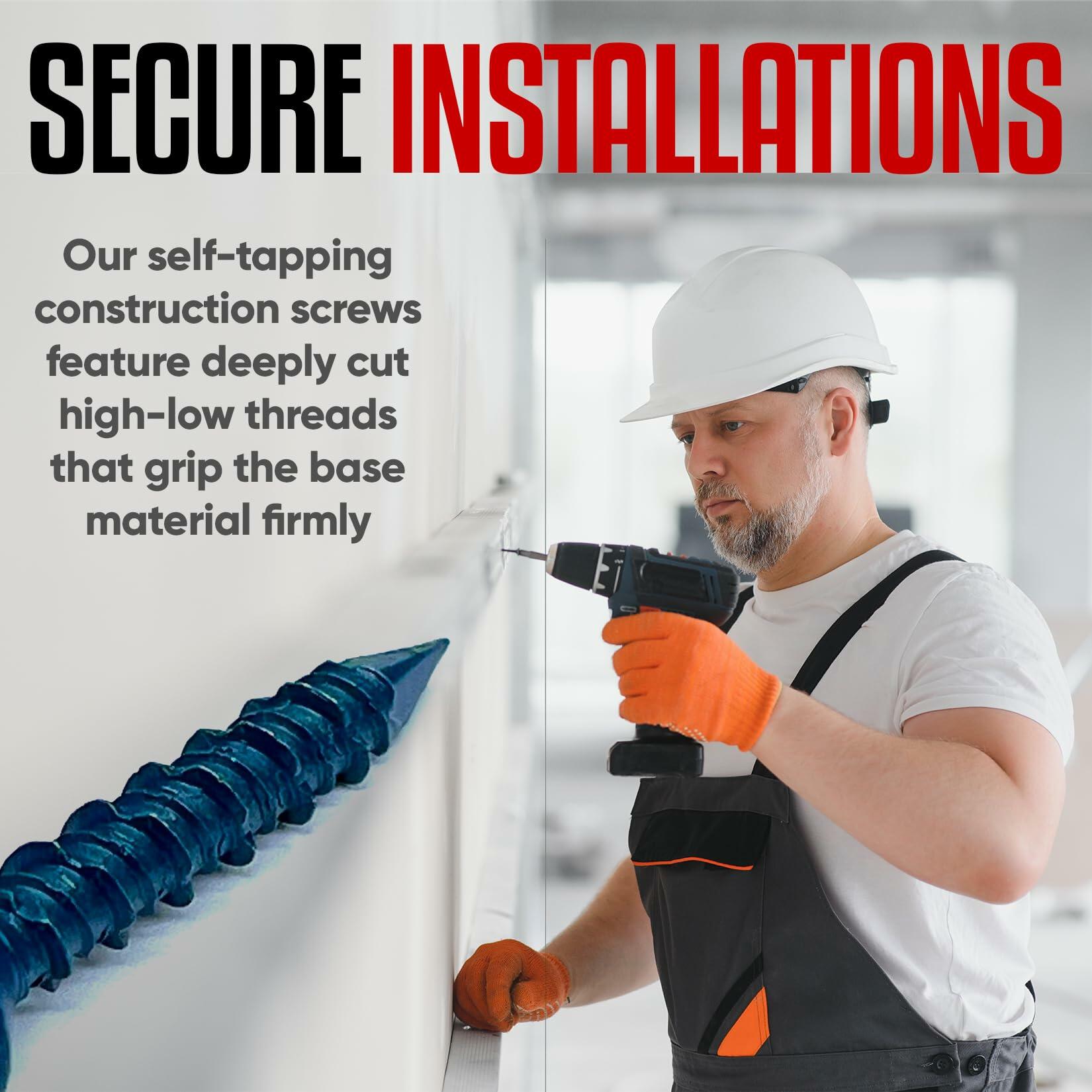 - Secure Installations - Set up frames, supports, and other fixtures with peace of mind! Our self-tapping construction screws feature deeply cut high-low threads that grip the base material firmly.