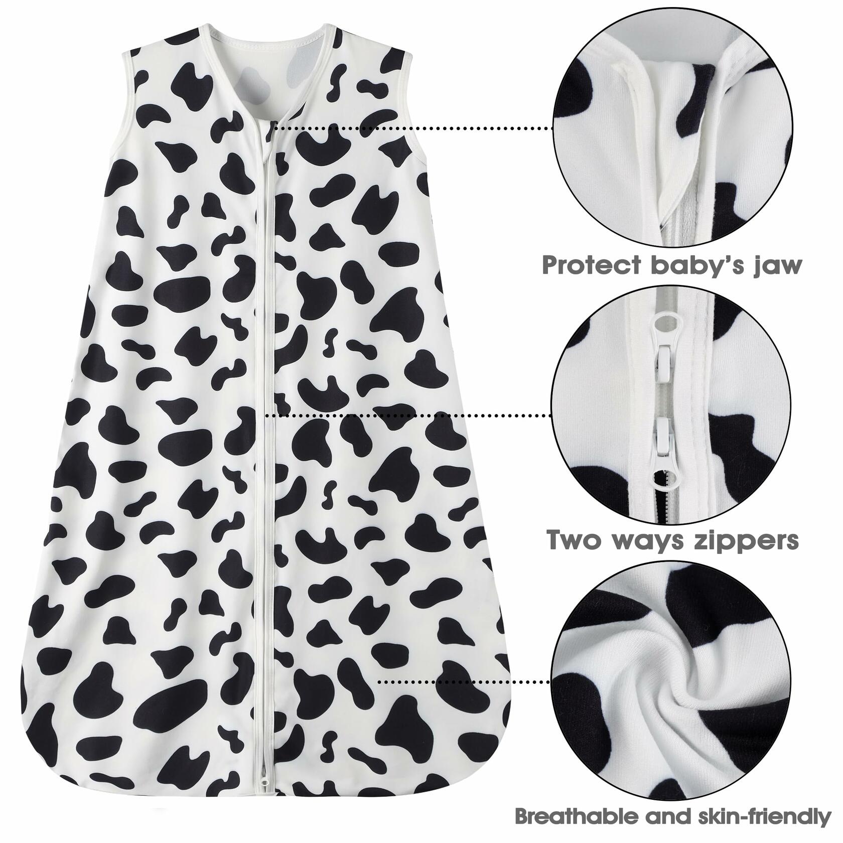 GUNTAIL Baby Sleep Sack 2-Way Zipper Rayon Cotton Cow Print Size X-Large
