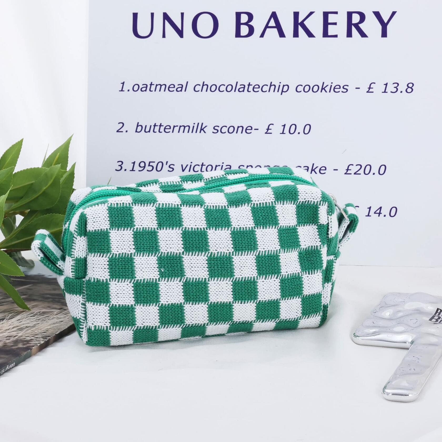GUTGNK 2-Pack Large Checkered Knitted Makeup Bags Cosmetic Pouch Green White