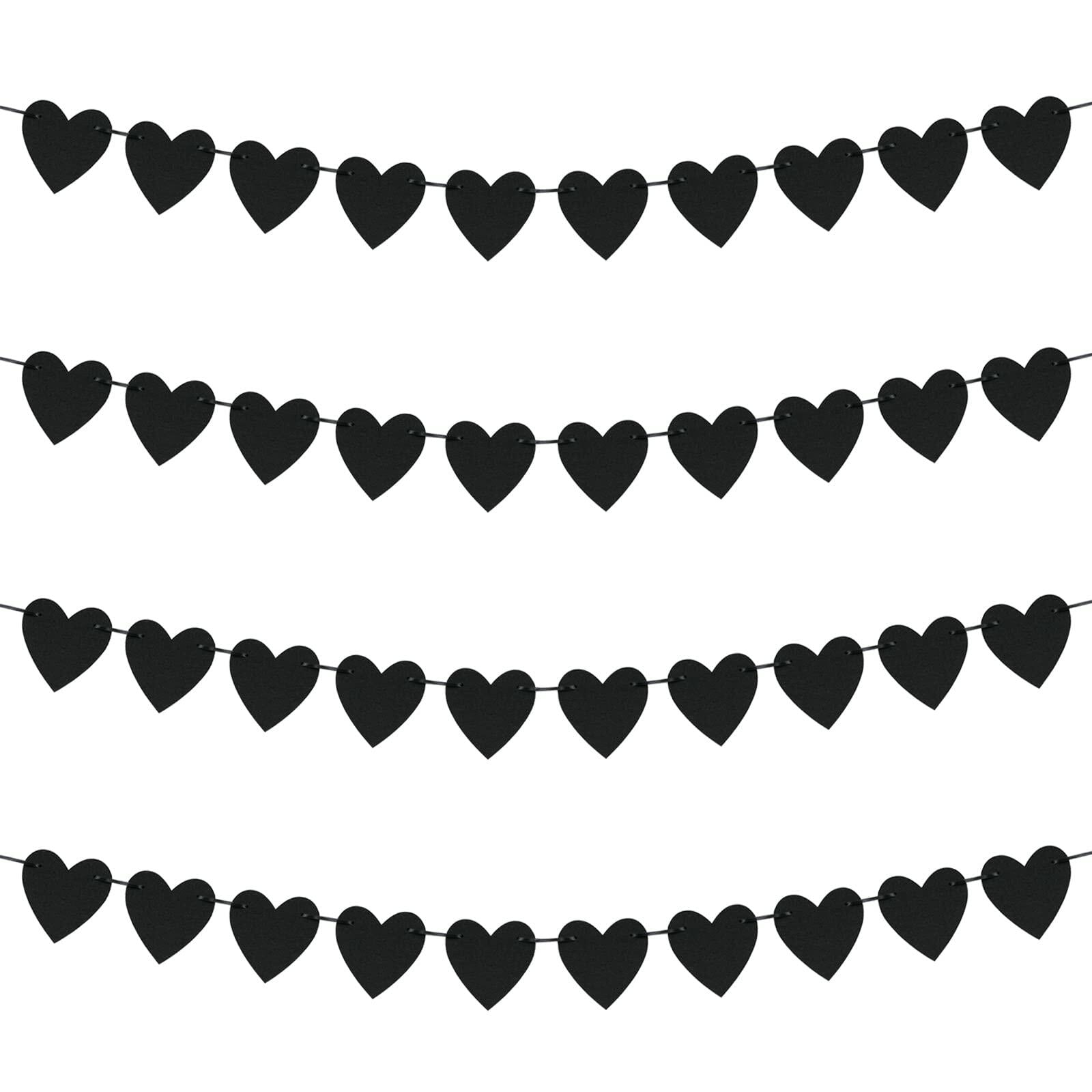 Guzon 4 Sets Black Heart Banners Felt Heart Garlands For Gothic Wedding Decor Valentines Decorations Anniversary,Birthday Party Decorations