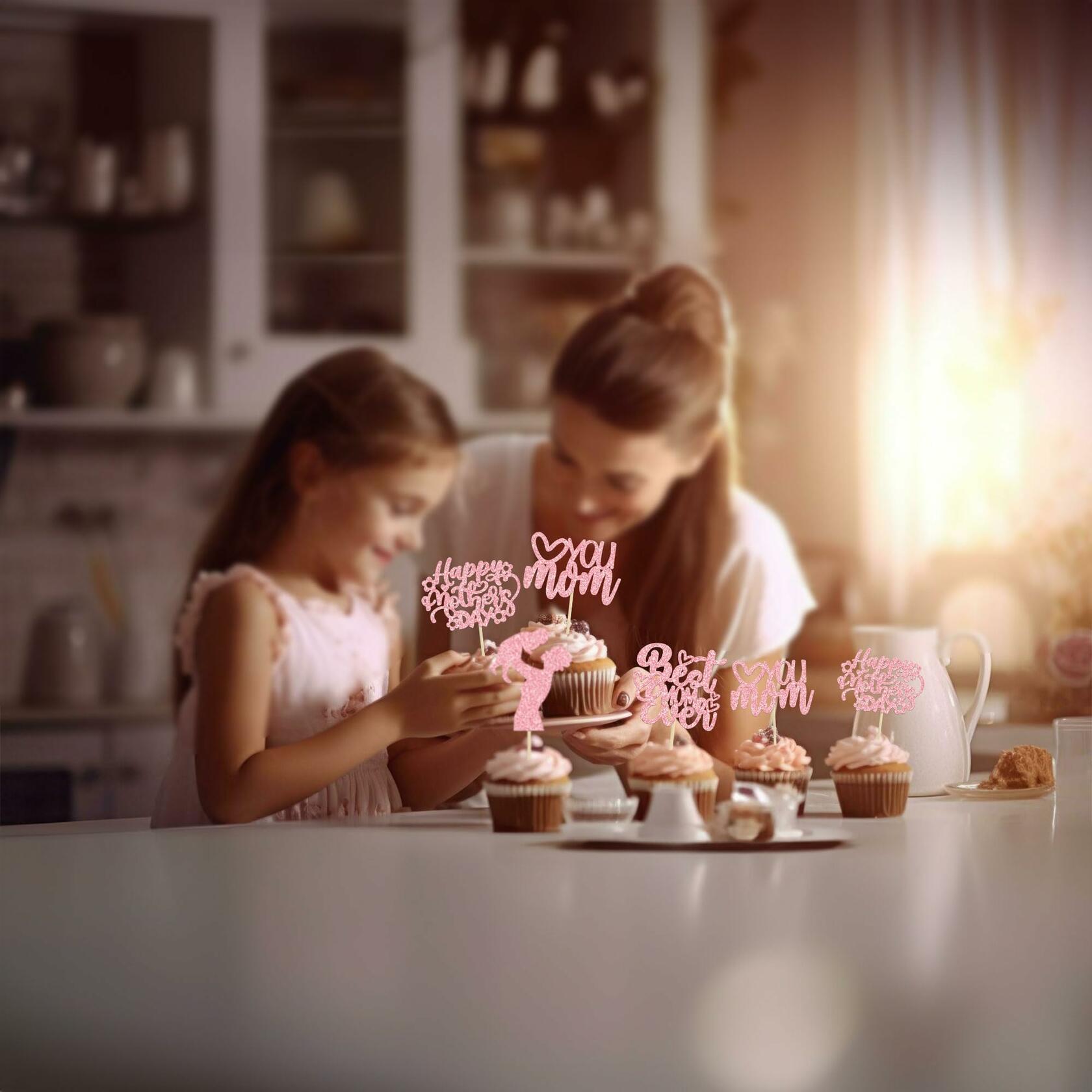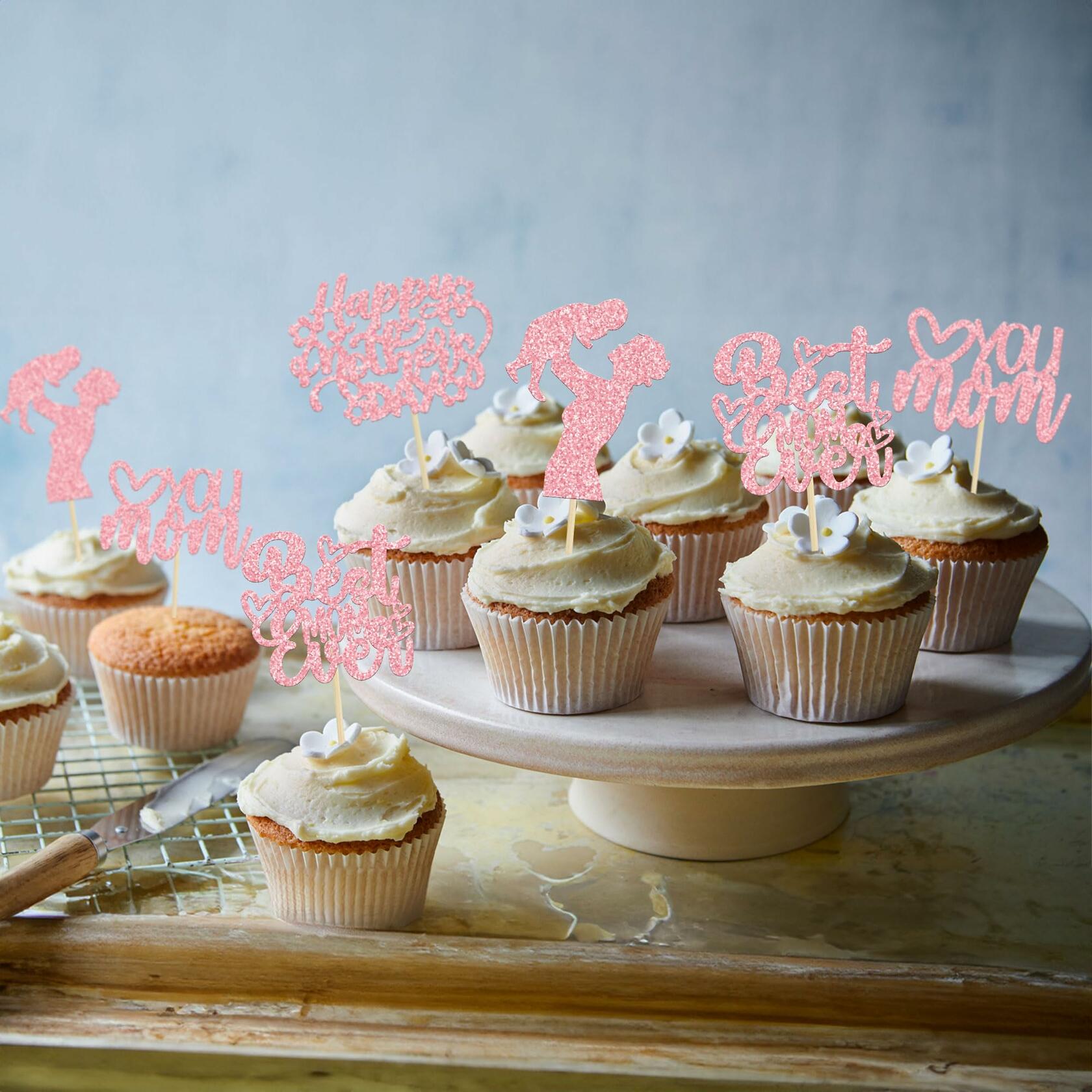 - ❤These glitter Happy Mother's Day Cupcake Toppers are so cute and good for happy mother's day theme party, best mom theme birthday party cake decoration. They can make your cupcake more attractive and bring the fun to your party. You can also apply them for ice cream, fruits, cookies and other desserts.