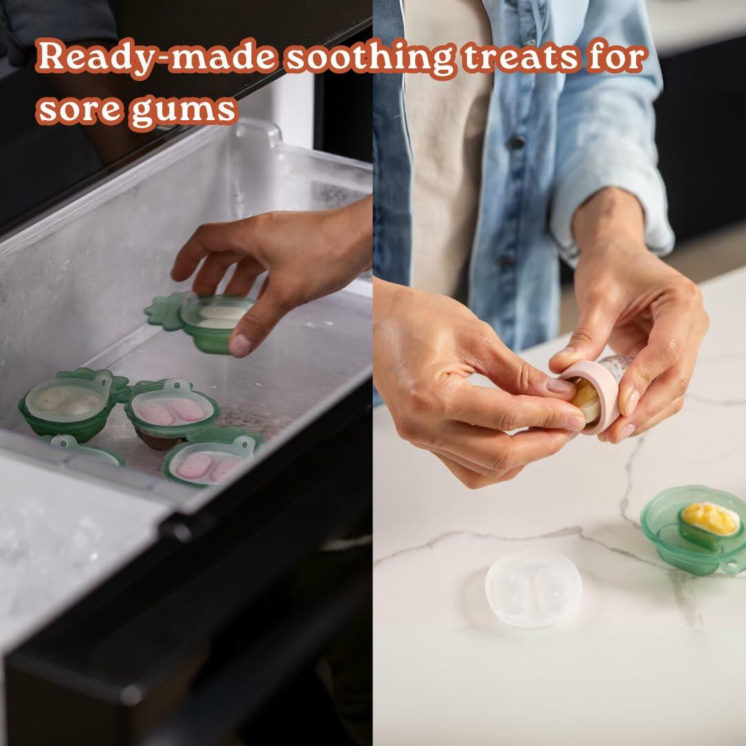 - SAFE & HYGIENIC MATERIALS: Constructed from 100% medical-grade silicone, our Freeze-N-Feed Mini Combo is non-toxic, BPA, PVC, and phthalate-free, making sure it’s safe for your baby to chew on. The baby fruit pacifier feeder includes a secure lid and stands upright on its cap, enhancing safety and ease of use.