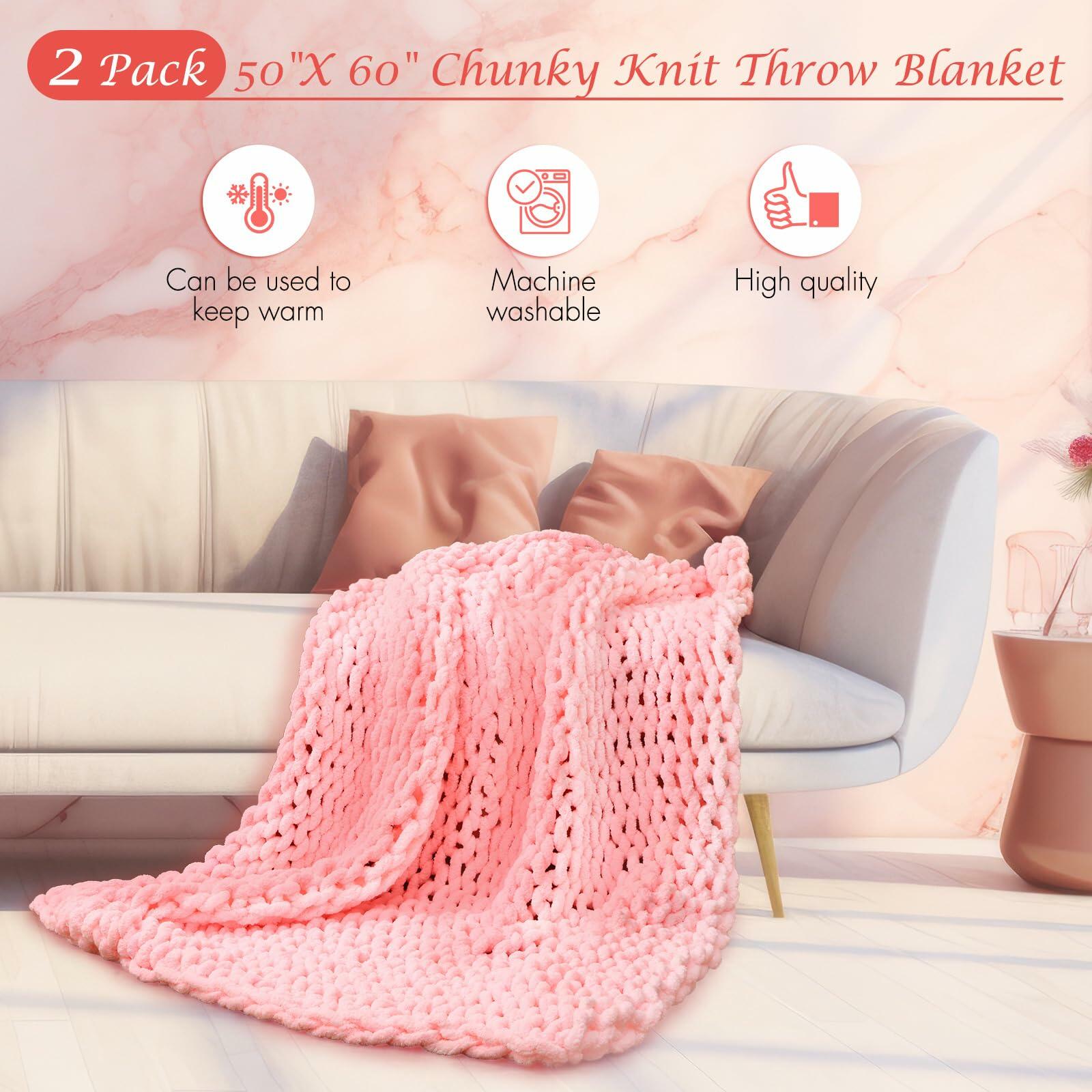 Hahafelt Chunky Knit Chenille Blanket 50x60 Pink 2 Pcs Throw Soft Washable