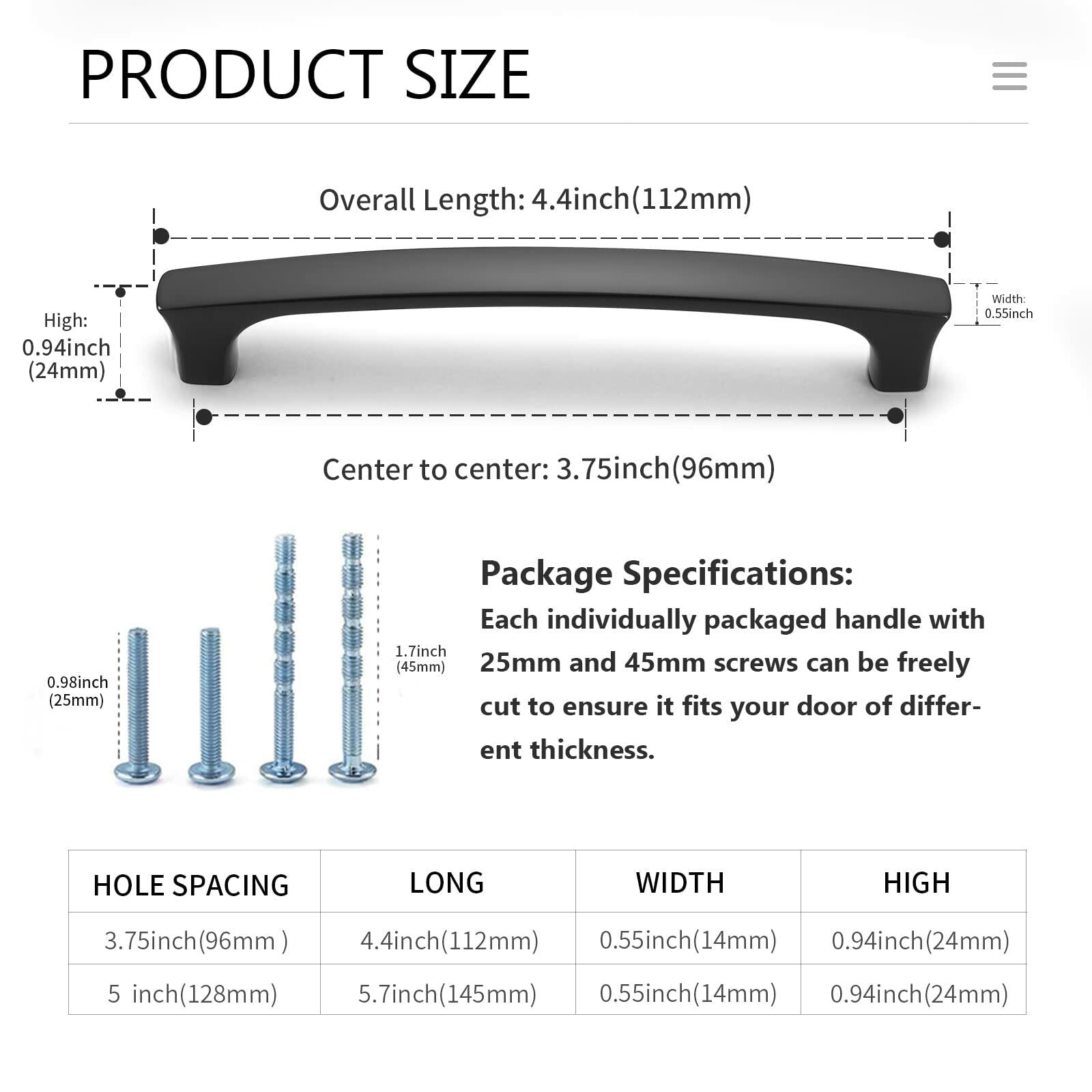 - Easy to install:3.75inch (96mm)cabinet pulls,6 Pack drawer pulls with 25mm and 45mm screws, free to cut to assure that it fits your door of different thicknesses.