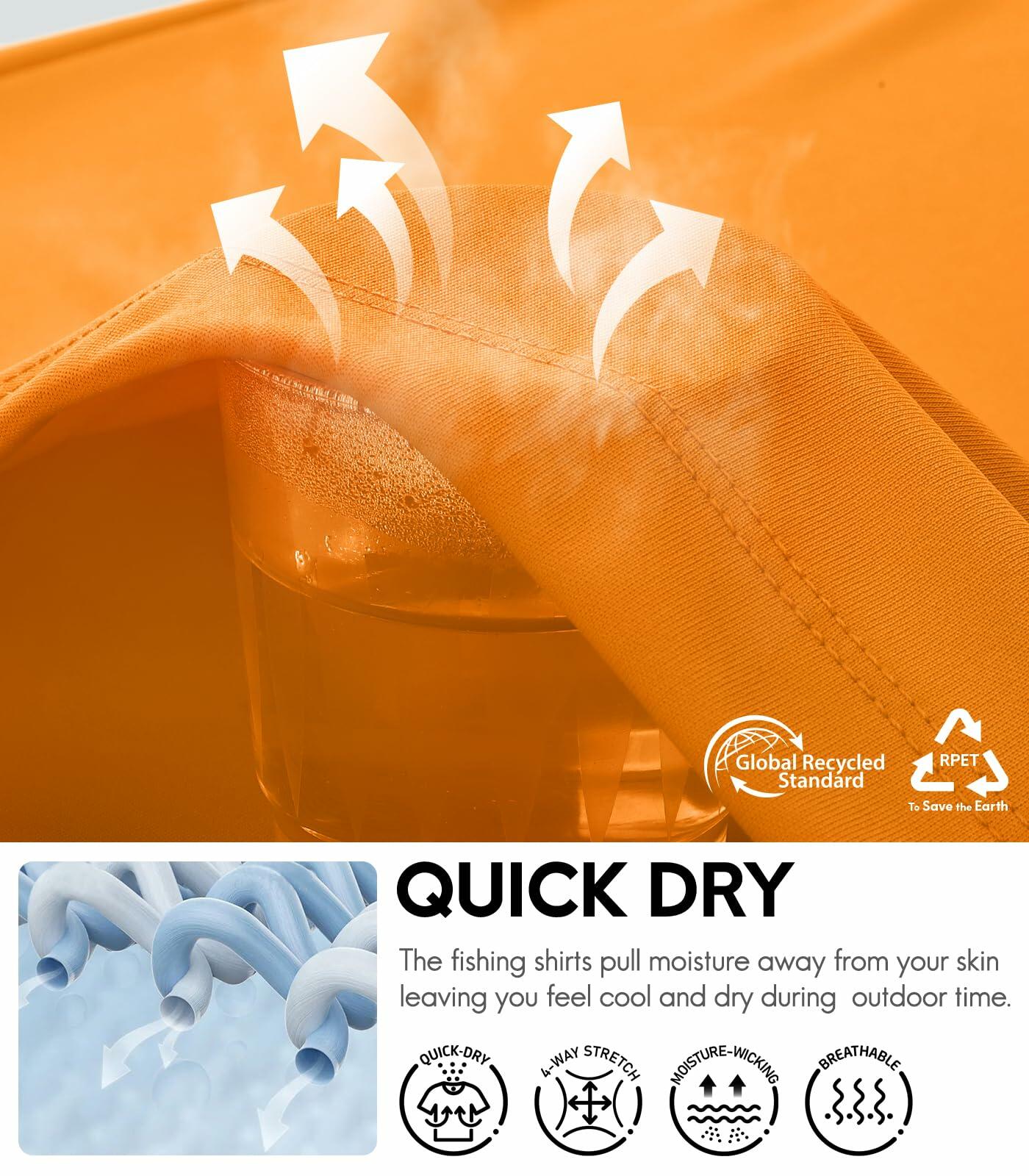 - Performance Material: Men's sport shirts are made from 100% recycled polyester fabric, which provides excellent breathability and soft touch, making you feel comfortable when you are outdoors