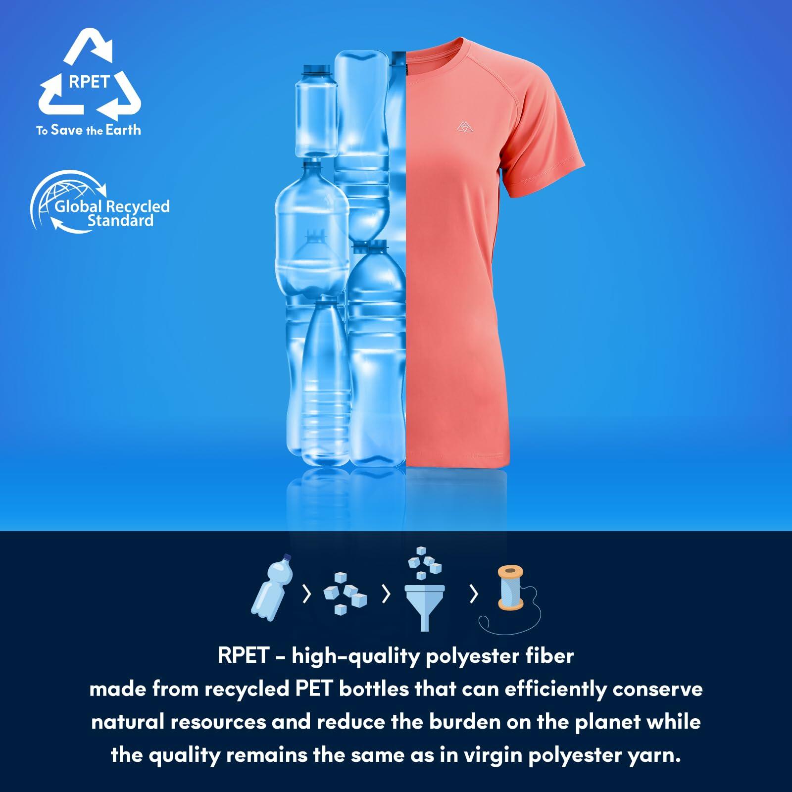 - Lightweight Polyester is 100% recycled from plastic bottles with soft, breathable, and moisture-wicking performance and comfort