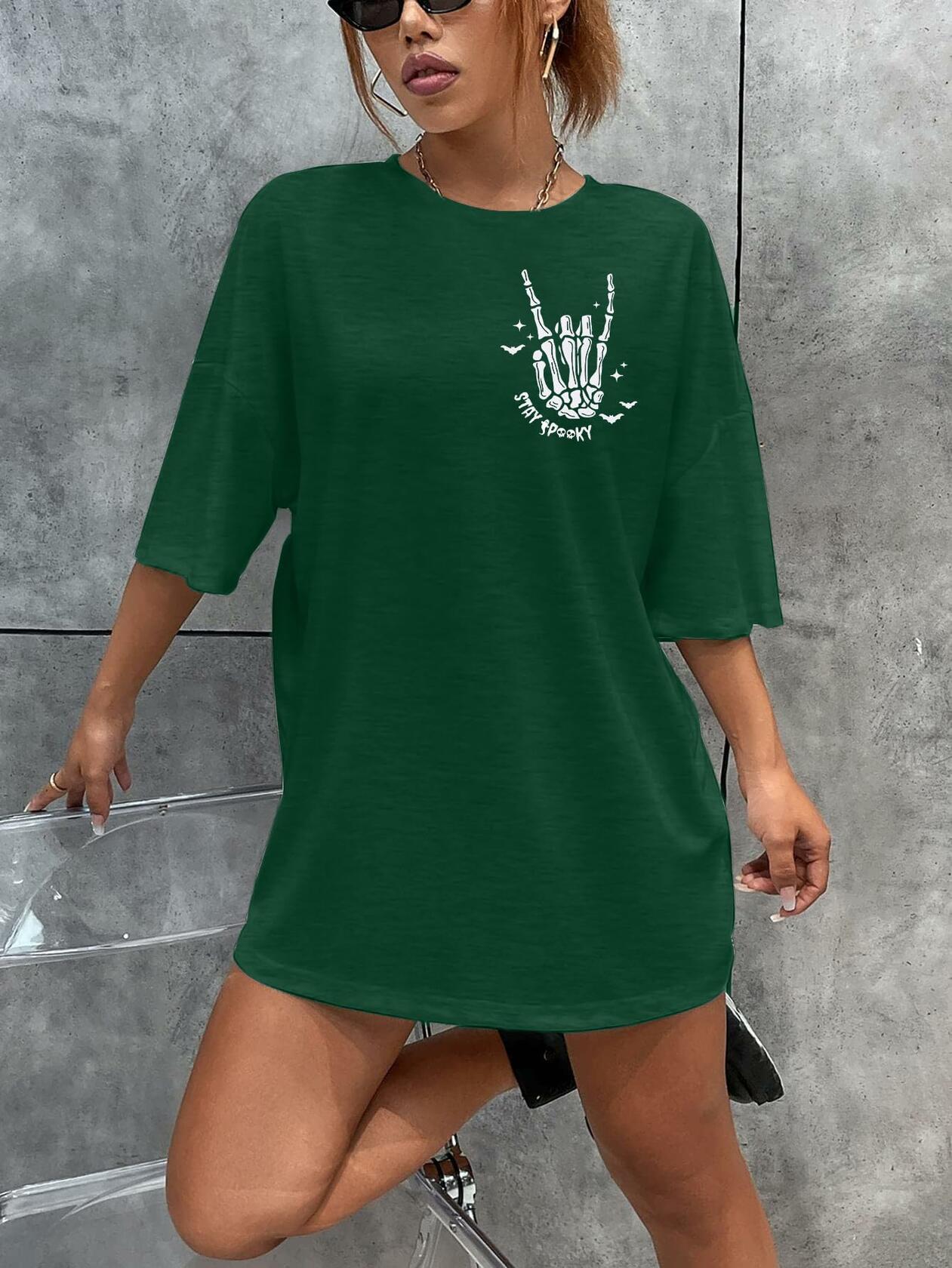 Halloween Oversize T-Shirt Women Cute Spooky Graphic Ghost Tee Green Size S