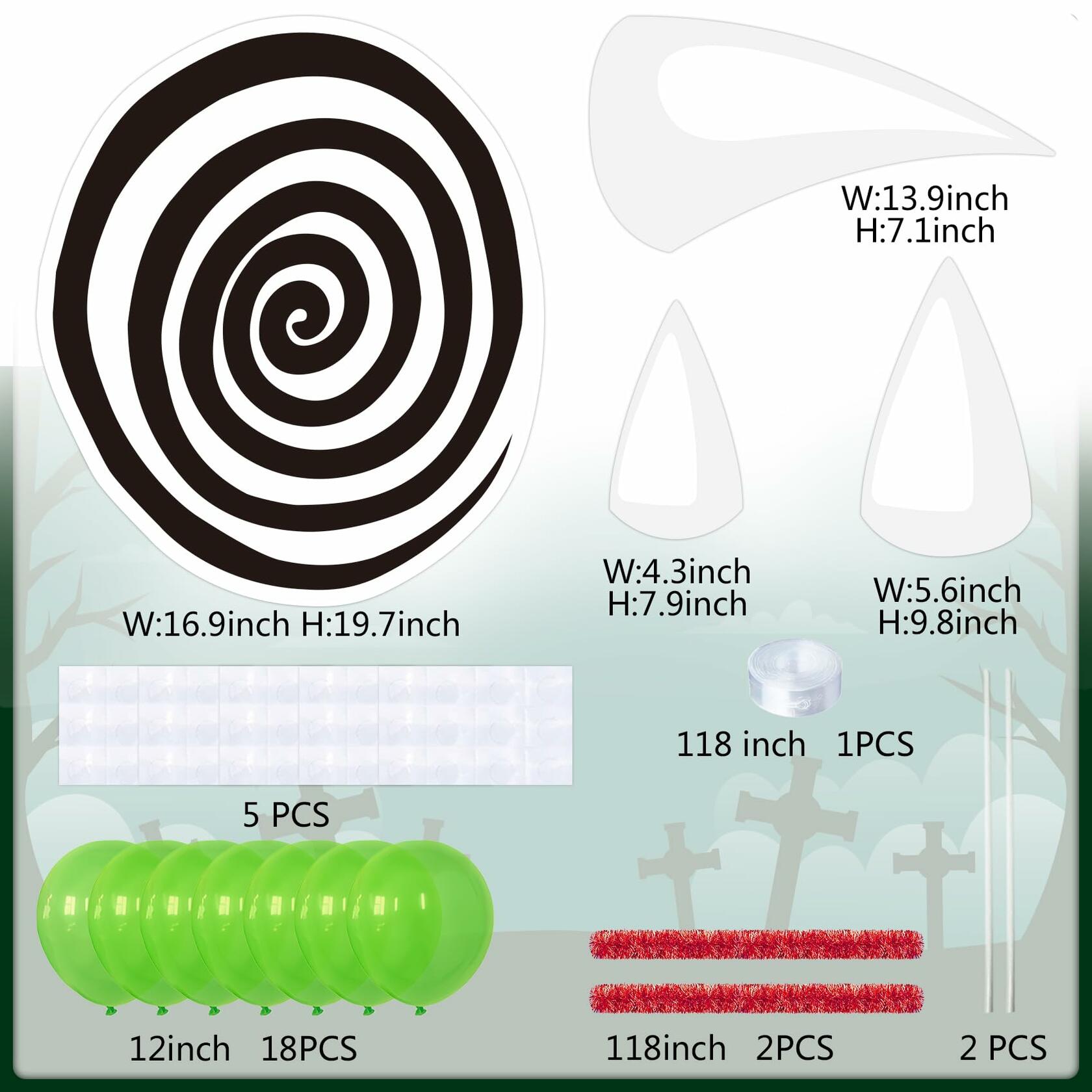 - Value Package: We have carefully prepared this value package for you to ensure that you will have an unforgettable and wonderful Halloween experience.Trunk or treat car decorations kit includes 2 pairs of clown eyes, 3 different shapes and sizes of teeth (4 of each style), 18 green rubber balloons, 2 piece of streamer (red, 118"),1 balloon chain, and 5 sheets of dotting glue.