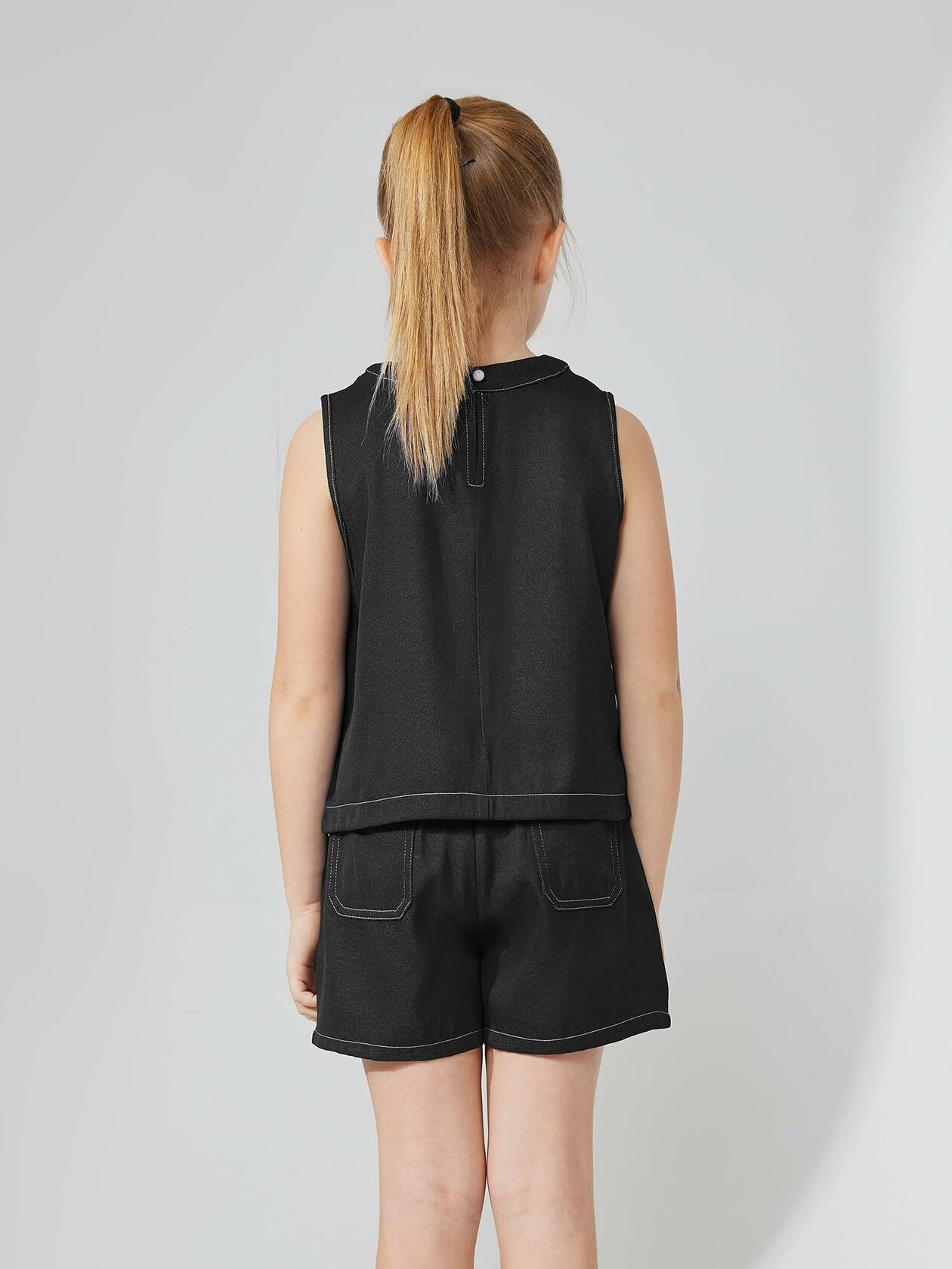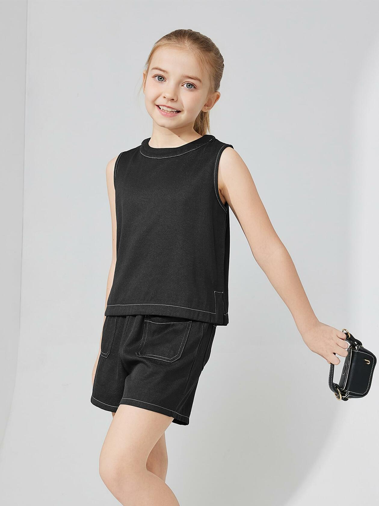- Functional & Stylish Design: Sleeveless, crew neck, side slit, back button, contrast stitching, elastic waist, front and back pockets to hold all their little treasures.Convenience and a trendy look