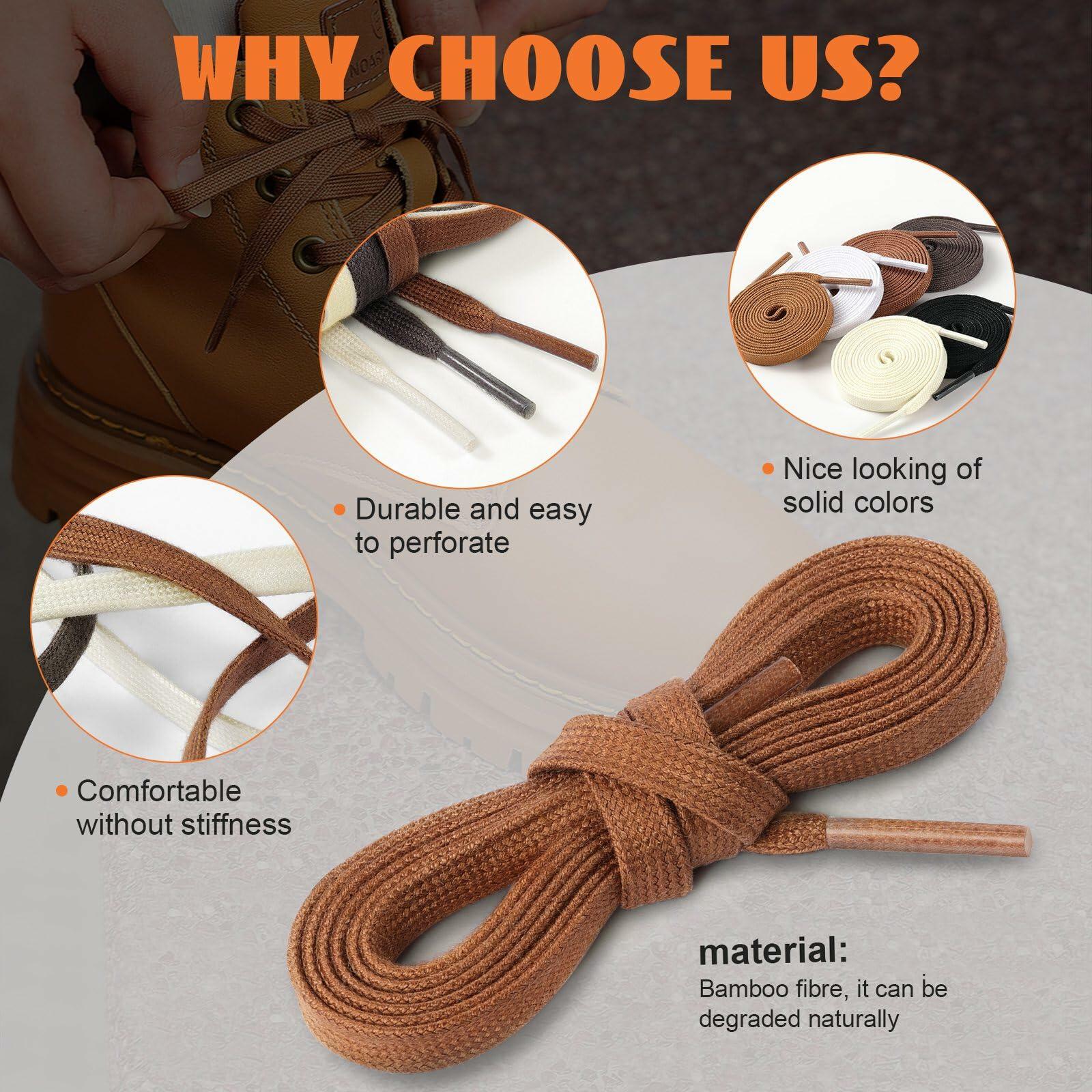 - Unique Material: Bamboofibre. It can be degraded naturally. Our slight waxed flat shoelaces are sturdy and strong, soft and elegant in texture, and will not fade.