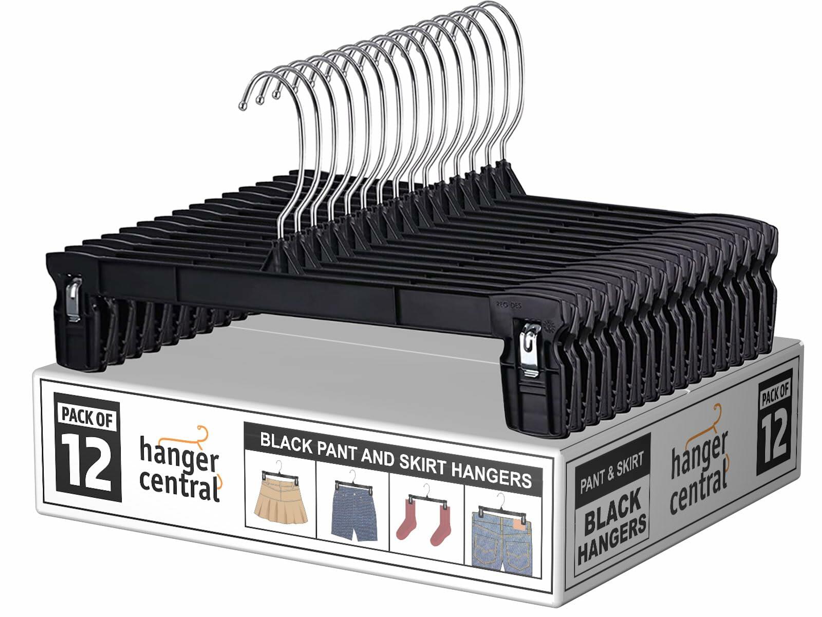 Hanger Central 12 Pack 12 Inch Slim Plastic Pants Hangers with Clips Black