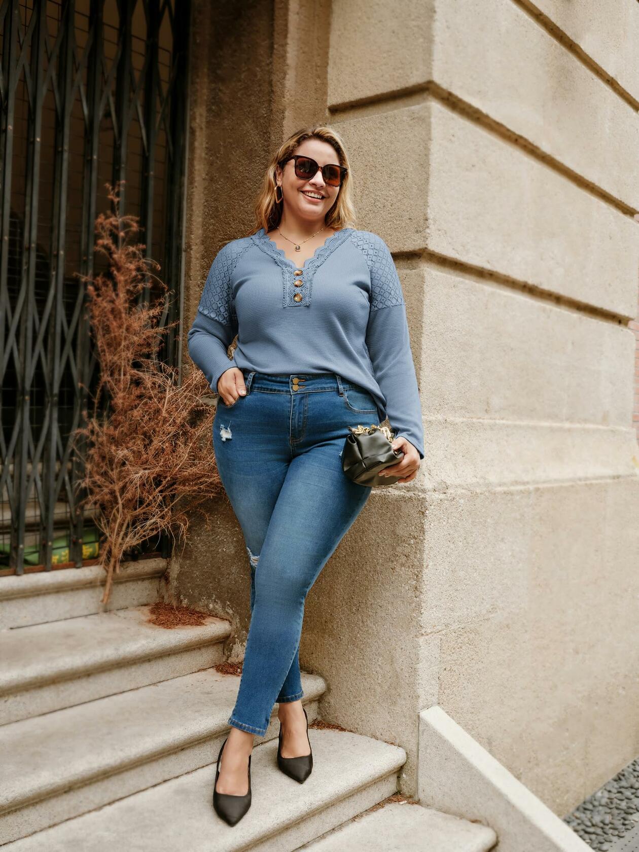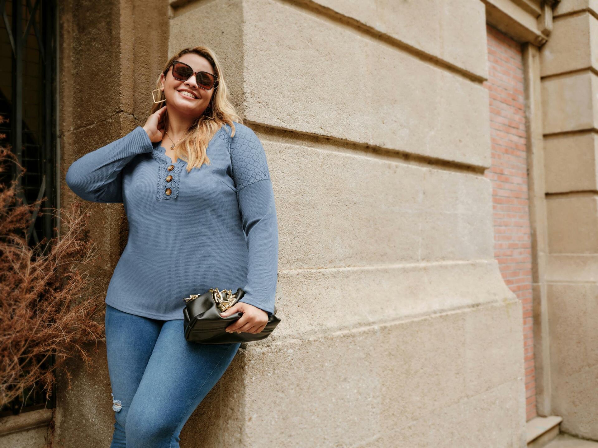 - PLUS SIZE DESIGN - Designed specifically for plus-size women, this V-Neck Button Long Sleeve Shirts Tops offers a comfortable, close-fitting cut that perfectly shows off your curves and ensures all-day comfort