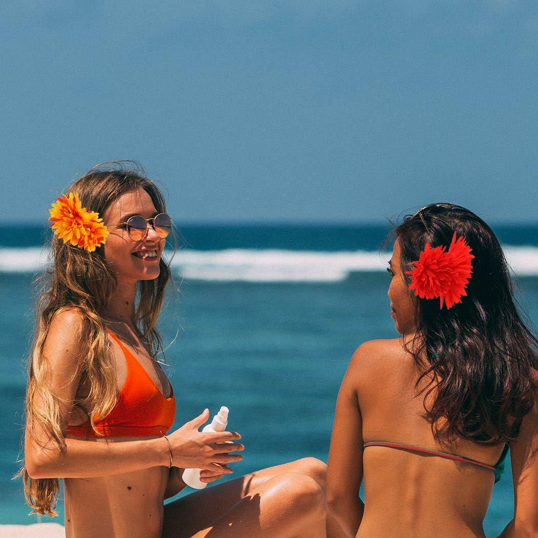 Haomye Dahlia Flower Hairpins Red Orange 2PCS Hawaiian Wedding Style