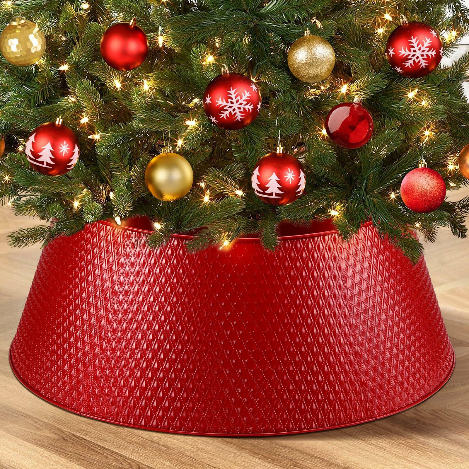 Hatisan Red Metal Christmas Tree Collar Basket Skirt 28'' Indoor Outdoor