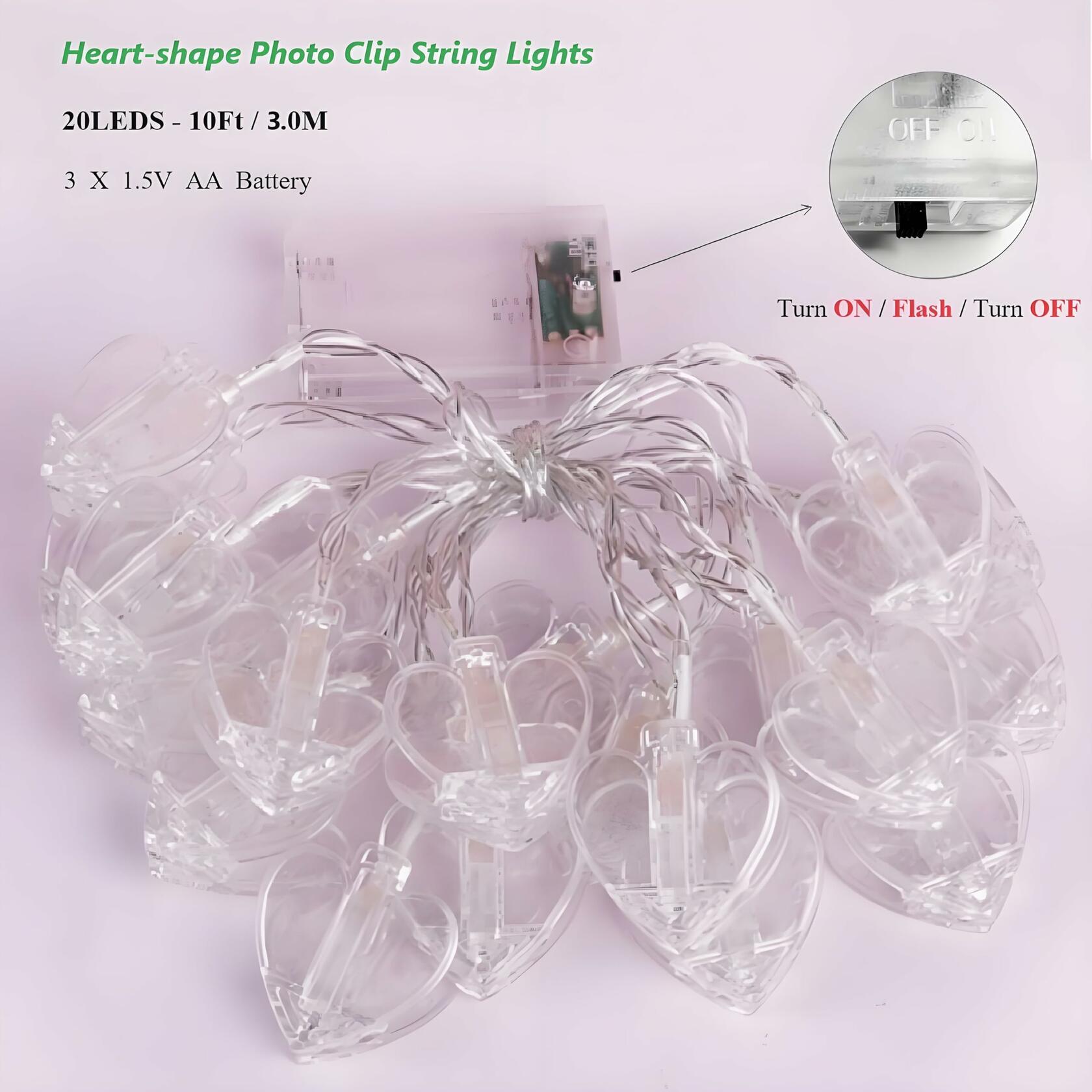 - [Easy to Use] Simply turn them and simply clip the photo onto the light string ,then enjoy the twinkling heart-shaped lights and photos, creating a magical ambiance for any occasion. Unlike other photo clip light string products that require complicated installation, in addition to installing the clip, the light string also needs to be installed separately.