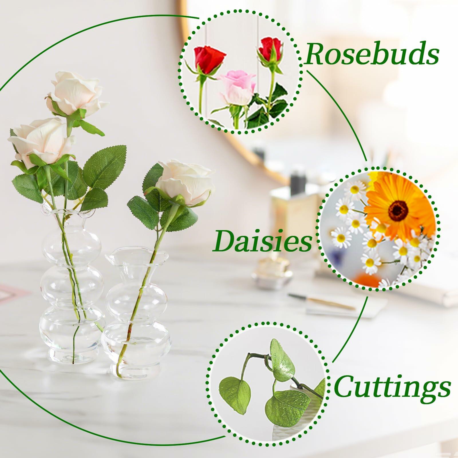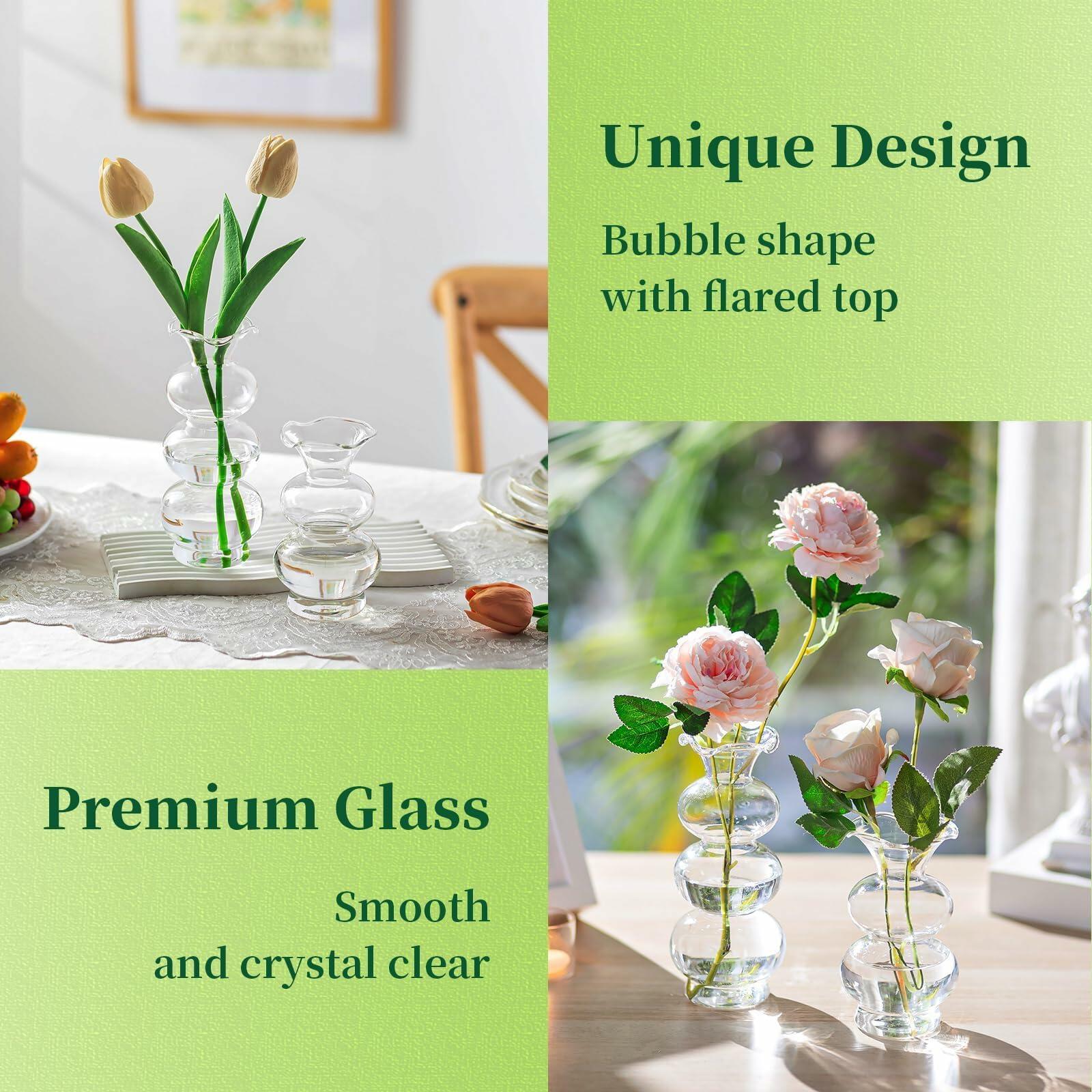 - Funky Bubble Vase: The clear bud vase set has a minimalist and cute look, unique bubble shape with adding a modern aesthetic vibe to any room. Two heights of small glass vases make for creative arrangements, whether displayed individually or as a set, the glass bubble vase will bring a visual interest!