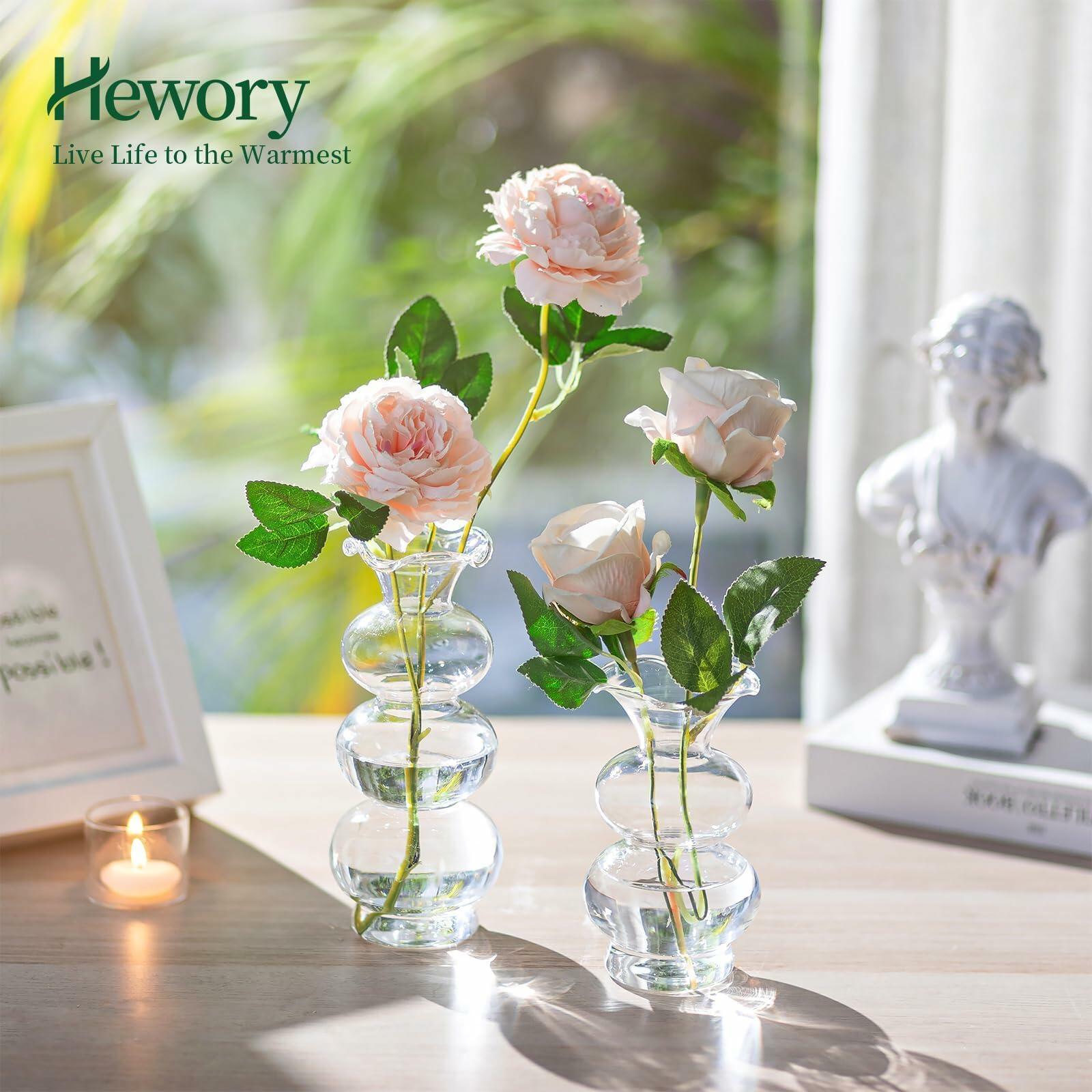 Hewory Glass Bubble Bud Vase Small Clear Glass Flower Vase for Single Stem