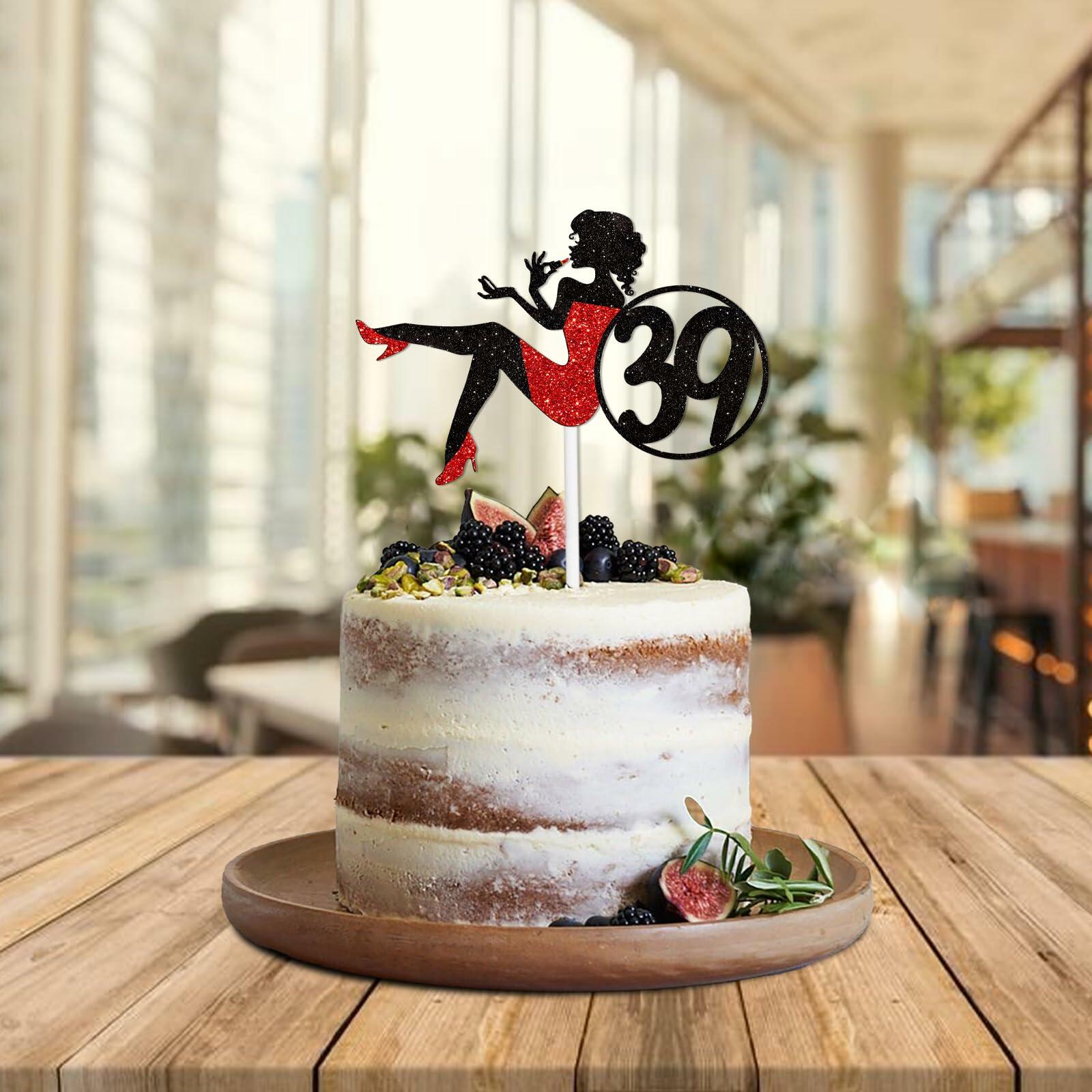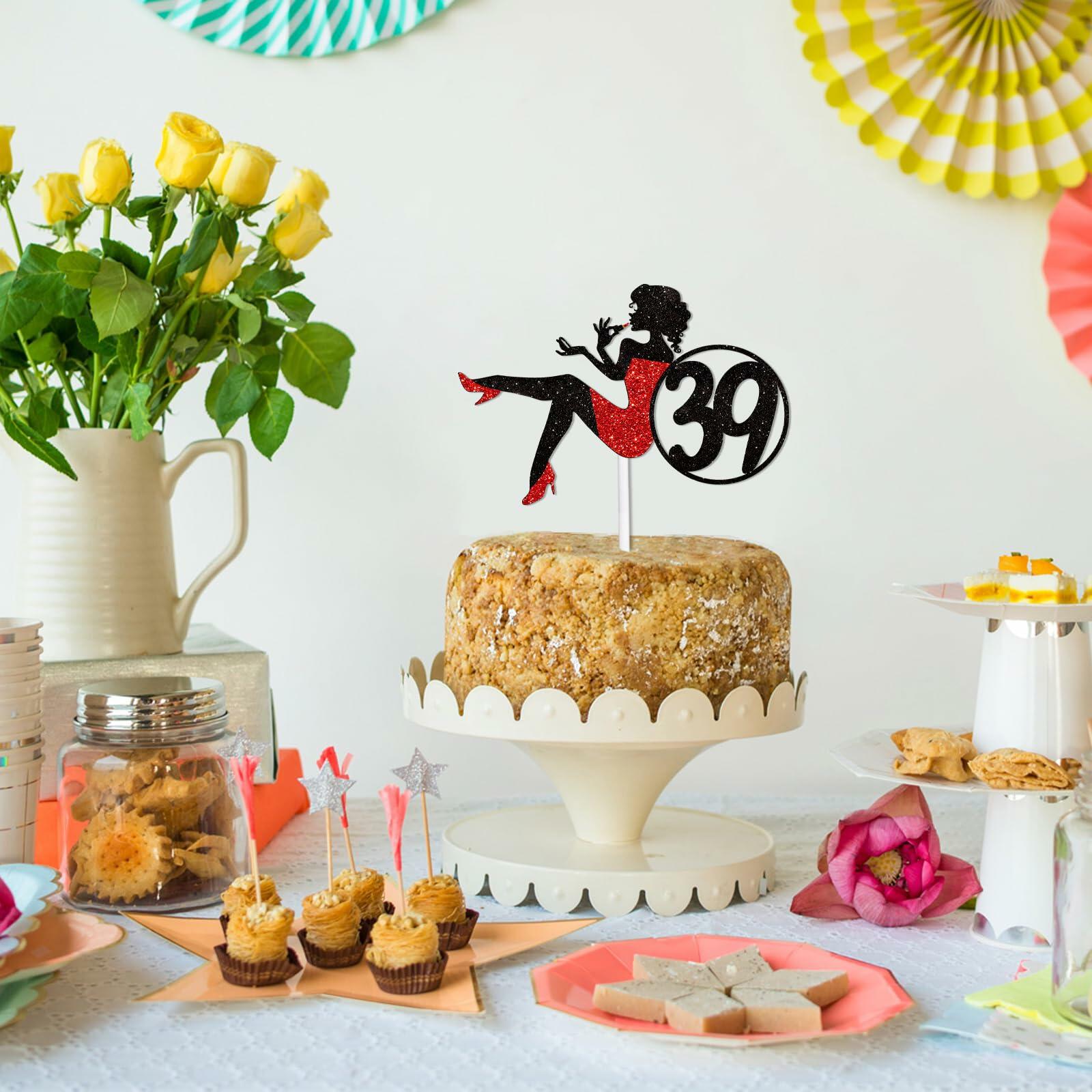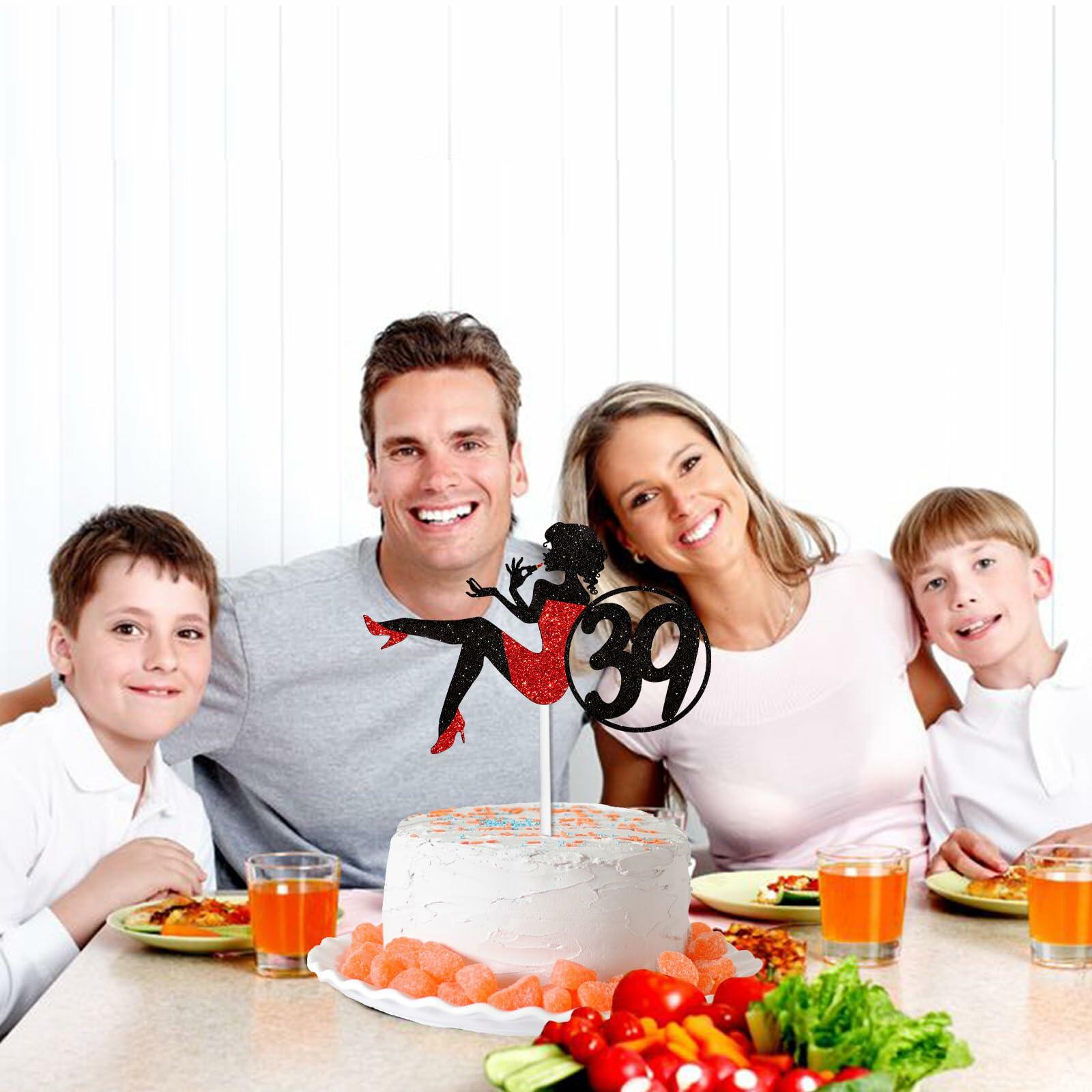 HEYUWING Red Glitter Lipstick 39 Girl Cake Topper Picks Paper Decor