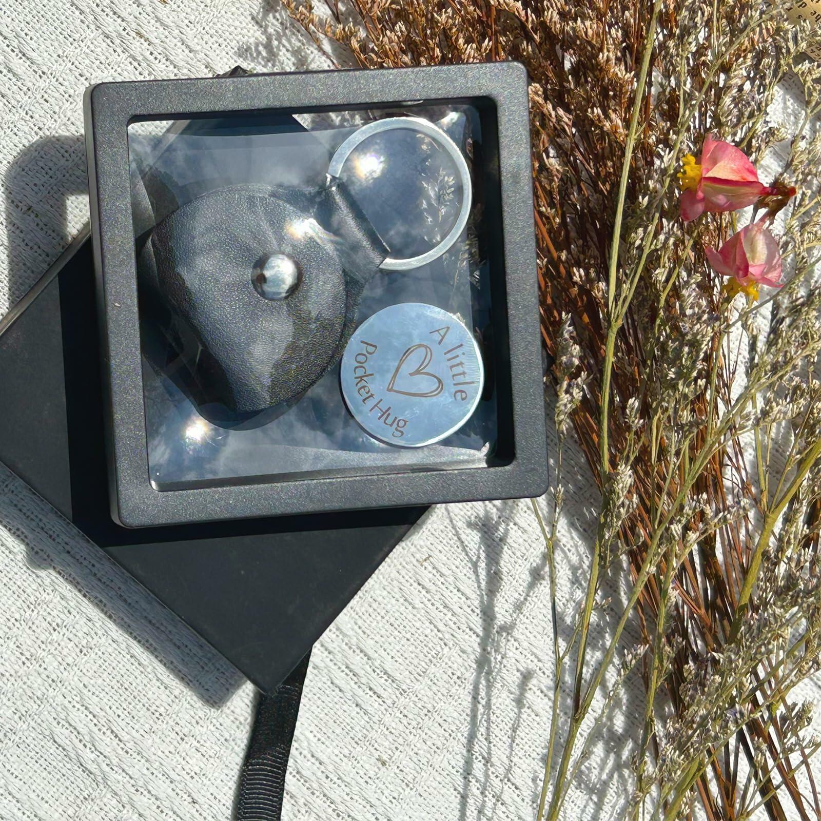 HHXFLY Pocket Hug Leather Keychain Inspirational Gift Box Small
